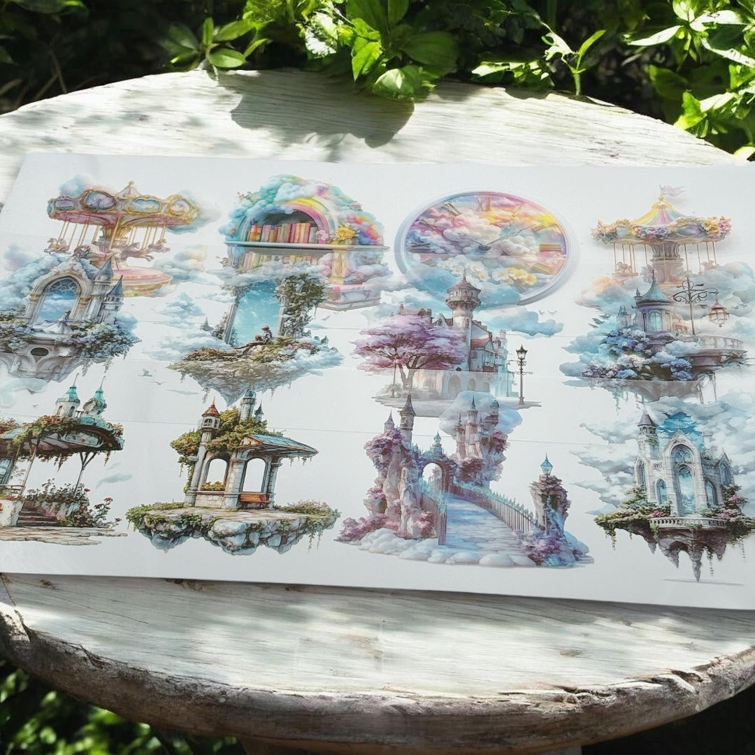 浮遊する城、花咲くアーチ、時計塔、虹の馬車、天空の回廊。