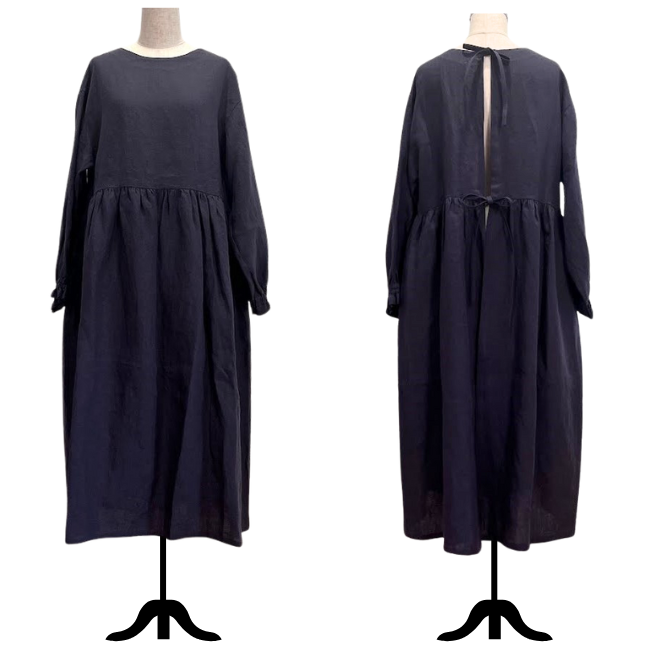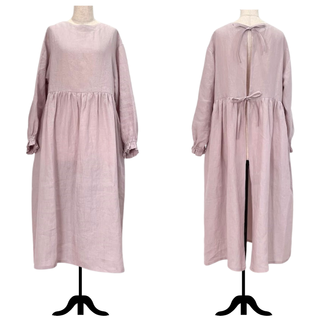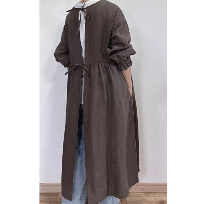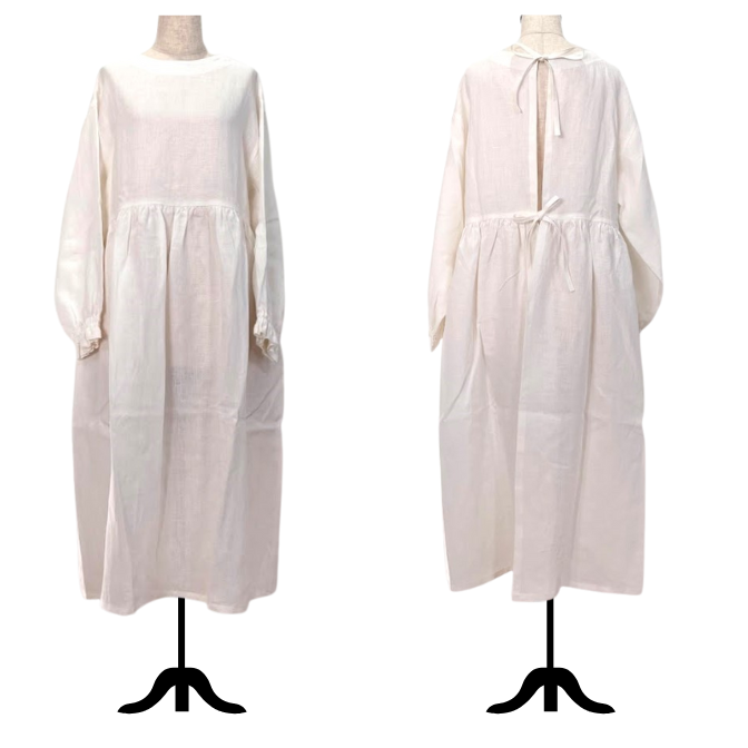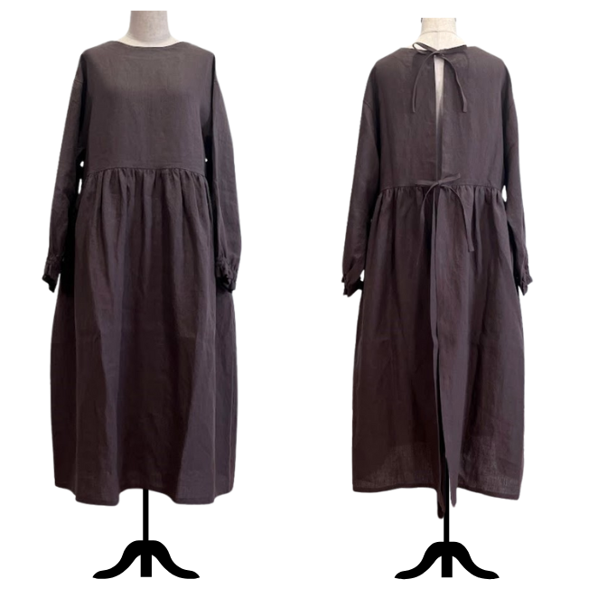 上質リネンの割烹着ワンピース ナチュラルカラー|かっぽう着屋(カッポウギヤ)