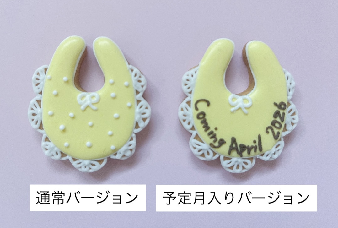 ご希望の方は+500円でスタイには出産予定月(例:Coming April 2026)を入れてお作りしますので、お問い合わせフォームからご注文ください。