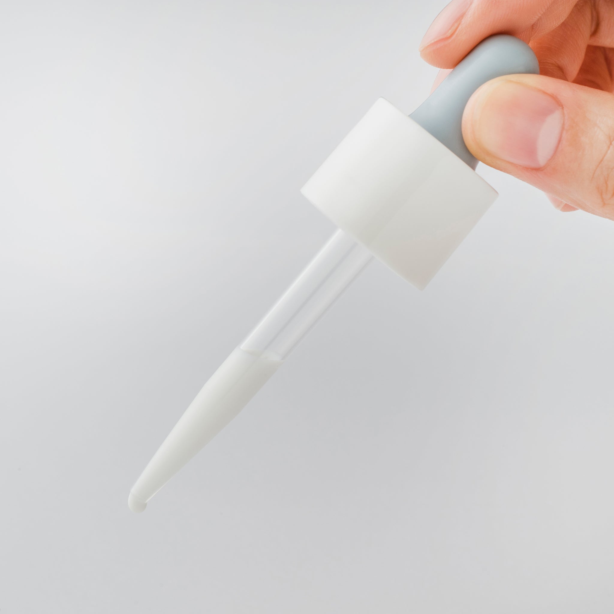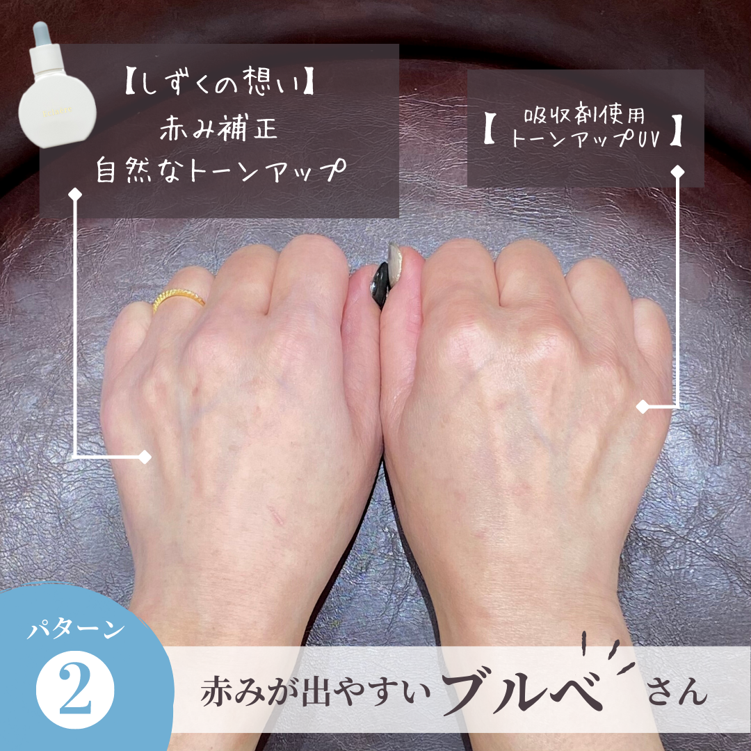 妖精のタイツをしっかりのせた後、一滴を手の甲にとり、顔にしっかりのばします。