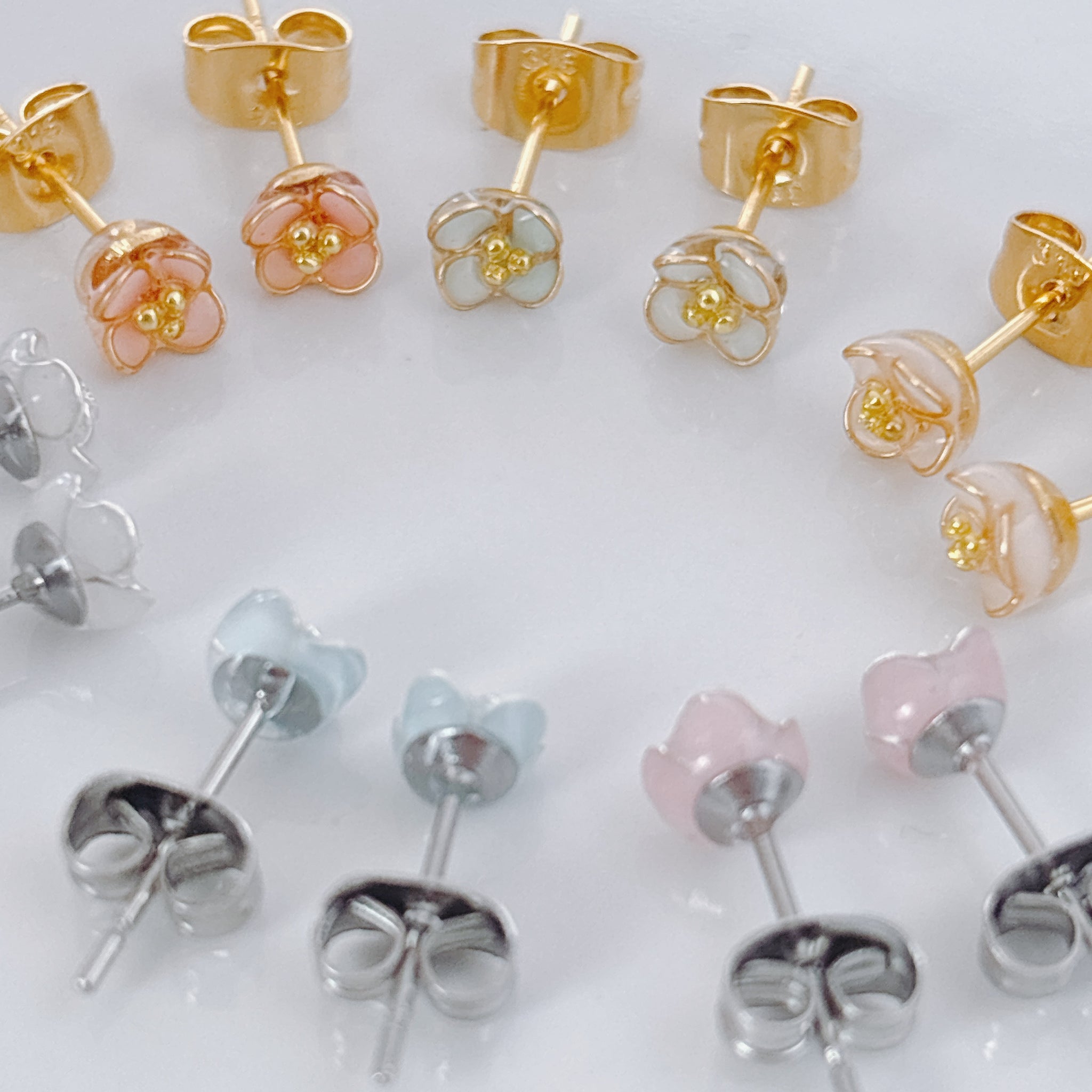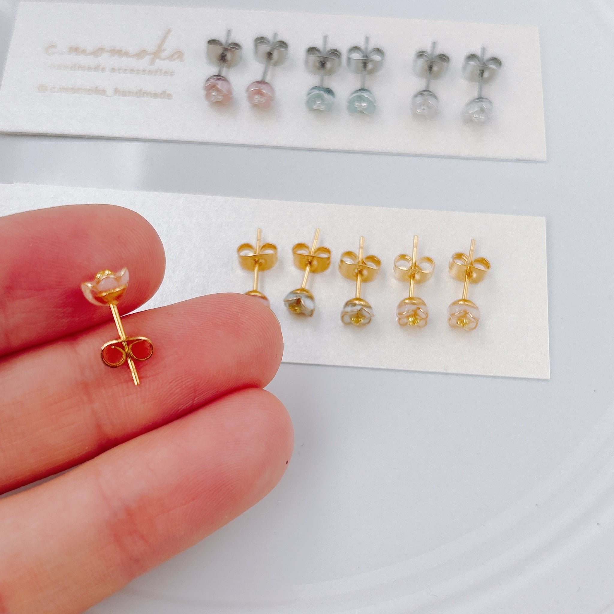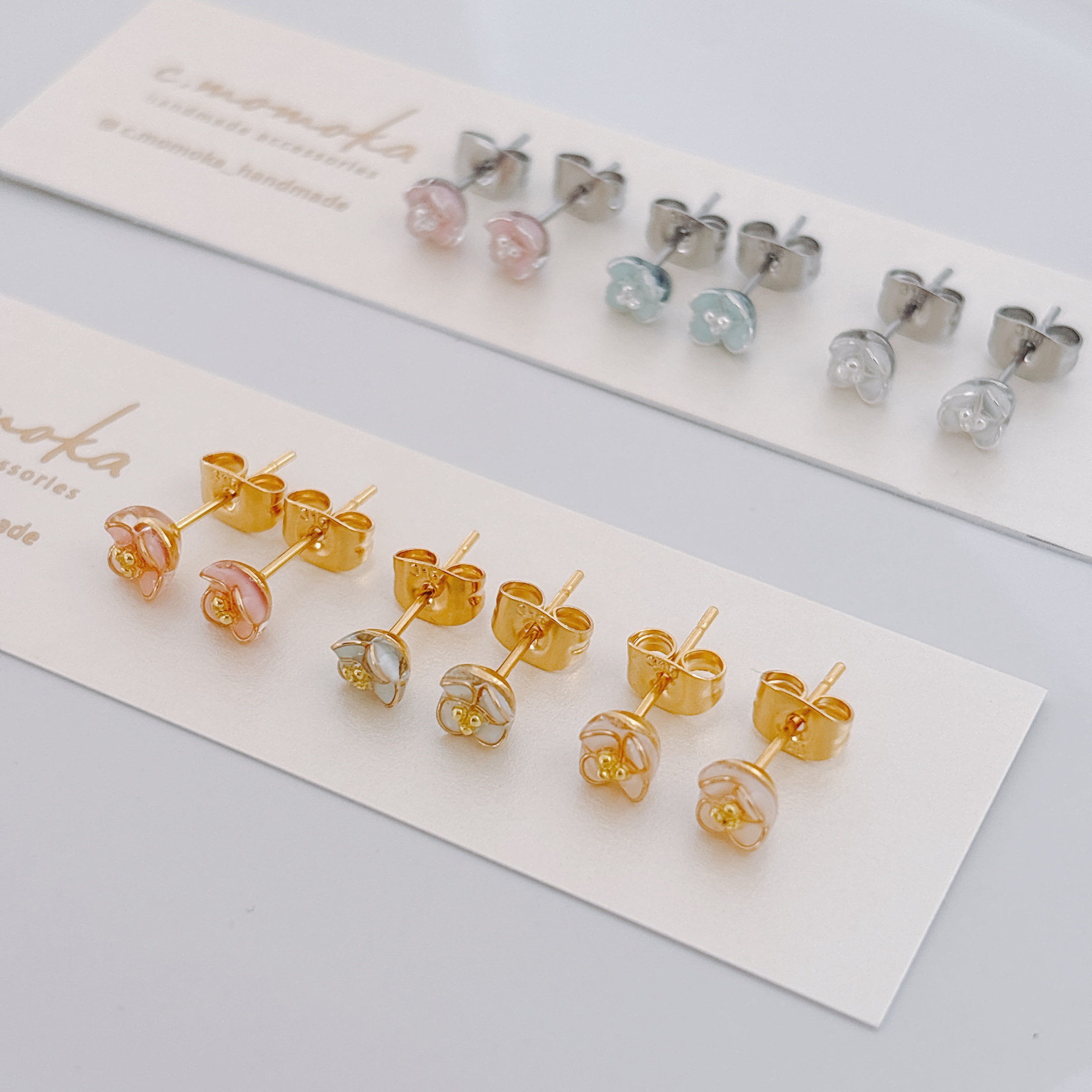ワイヤーを使い一輪ずつ丁寧に形作ったミニピアスです。