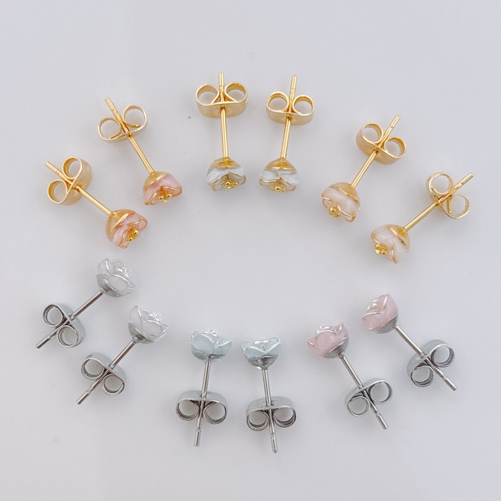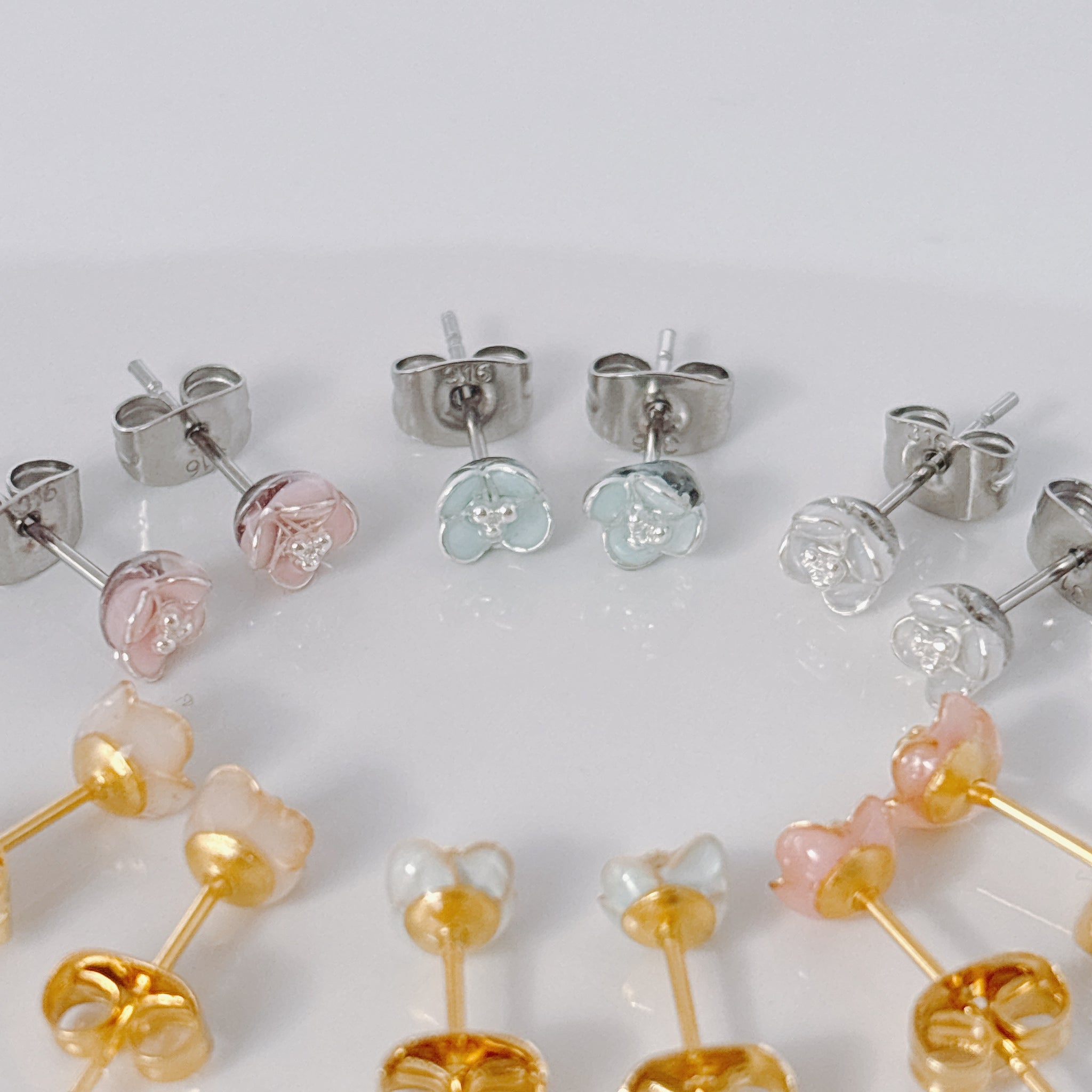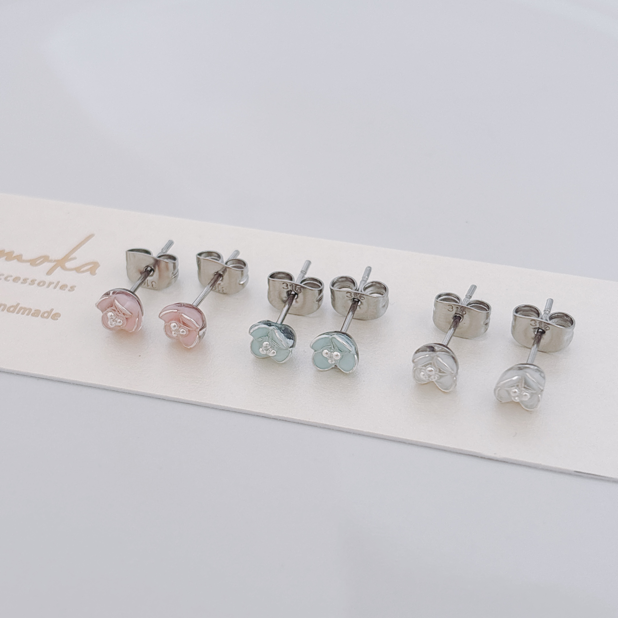 ワイヤーを使い一輪ずつ丁寧に形作ったミニピアスです。
