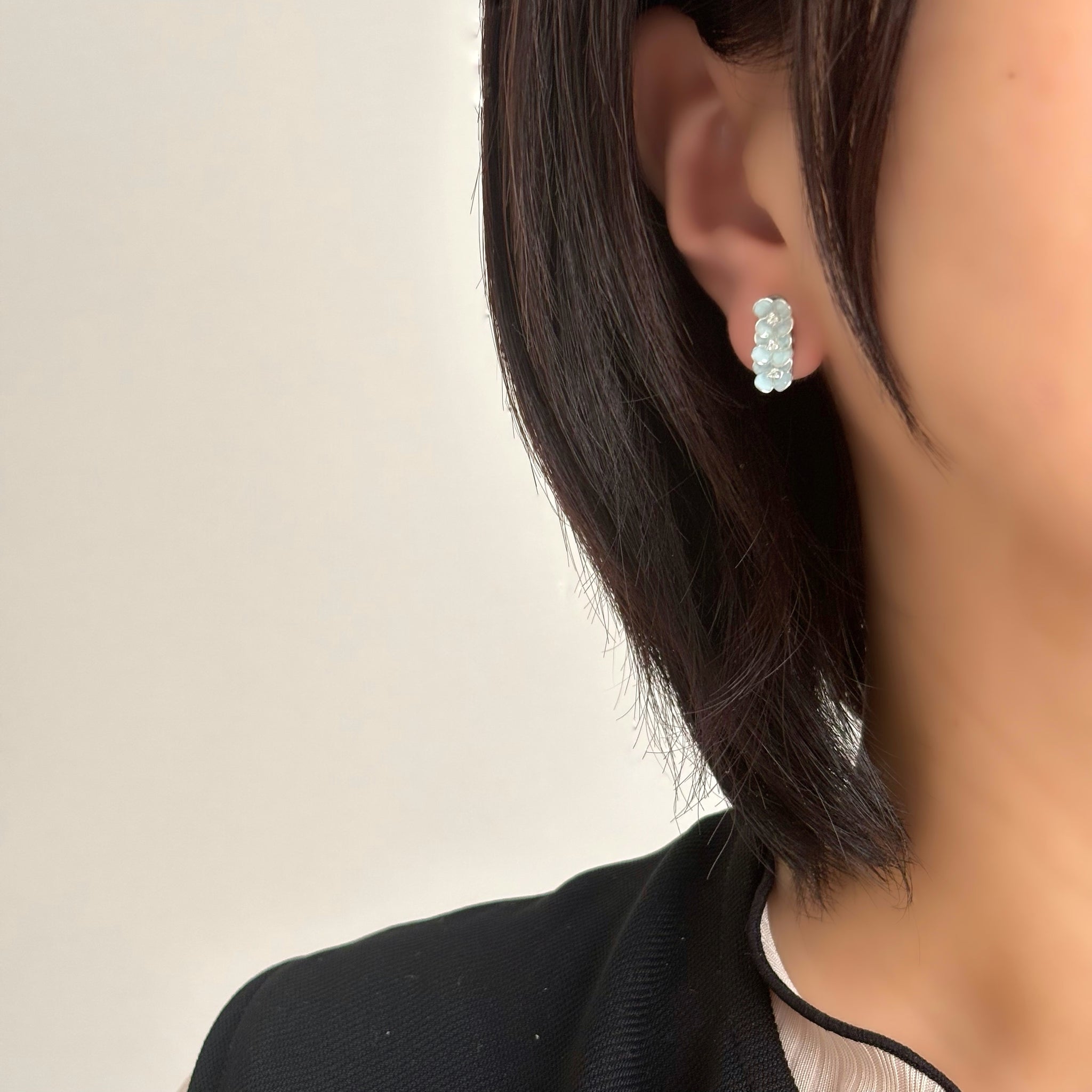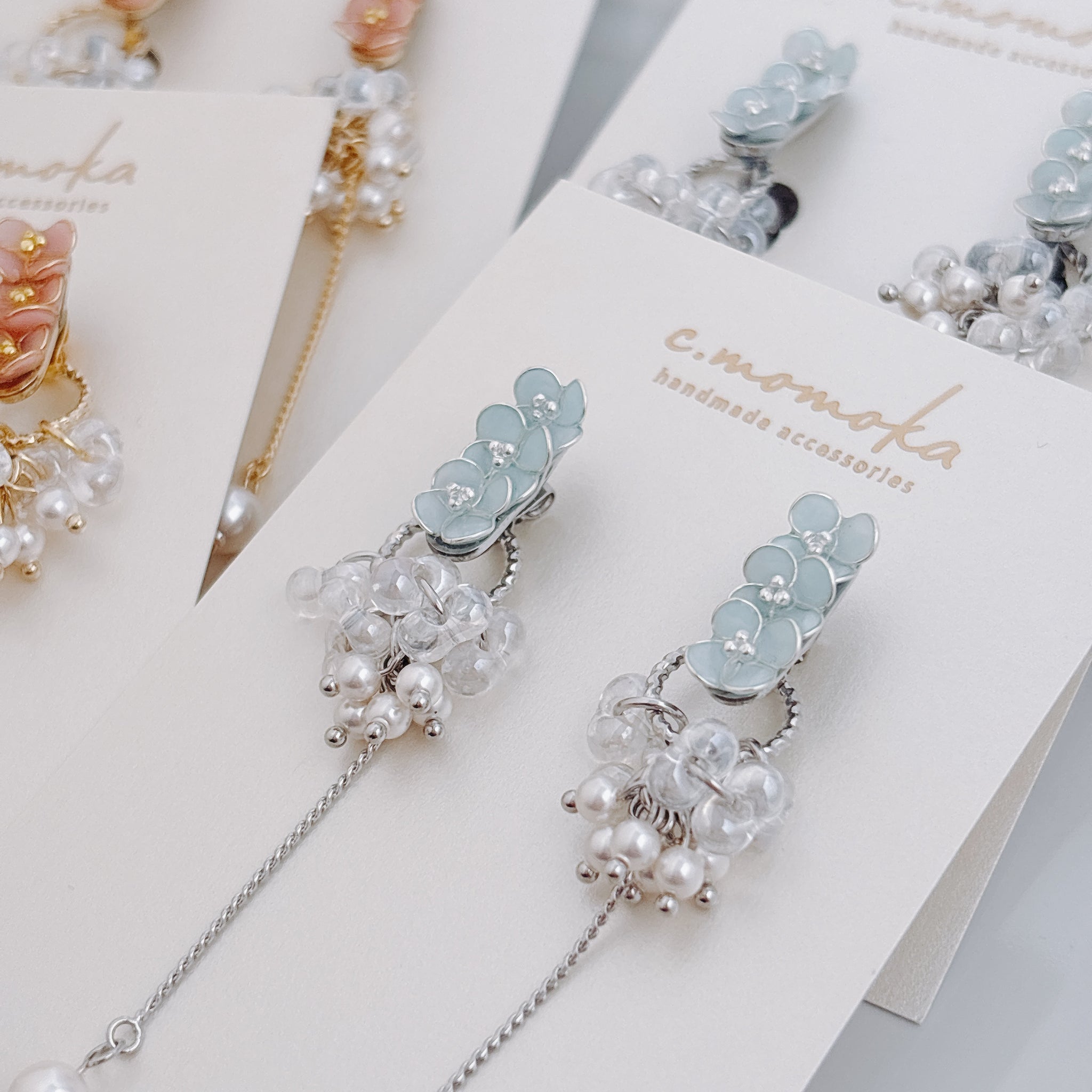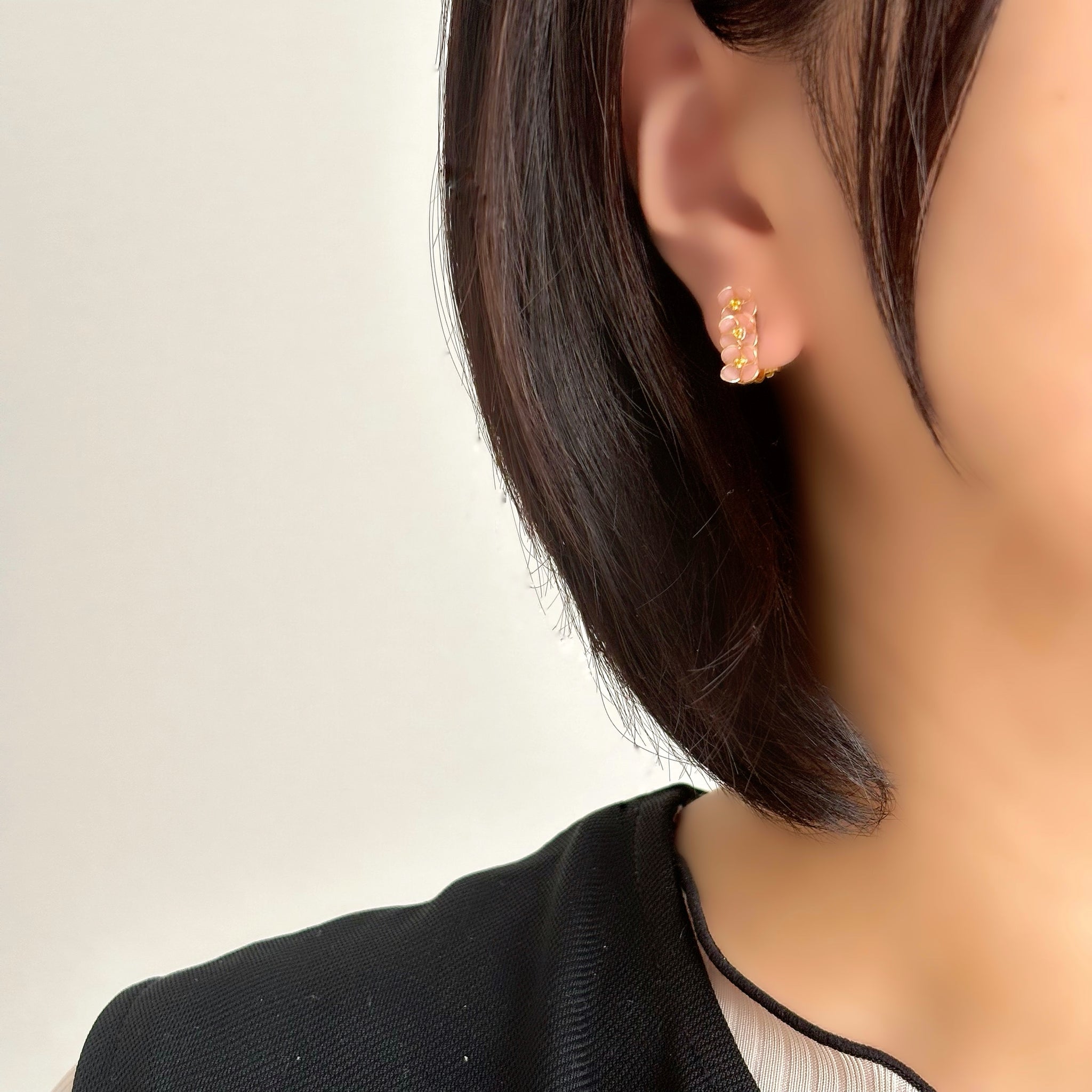 ワイヤーで1つひとつ丁寧に咲かせたフラワーモチーフのアクセサリーです。 約7mmほどの小さなお花たちを、淡くやさしい色合いで仕上げています。 大人の日常に、ほんのり甘さを添える小花アクセサリーをお楽しみください。