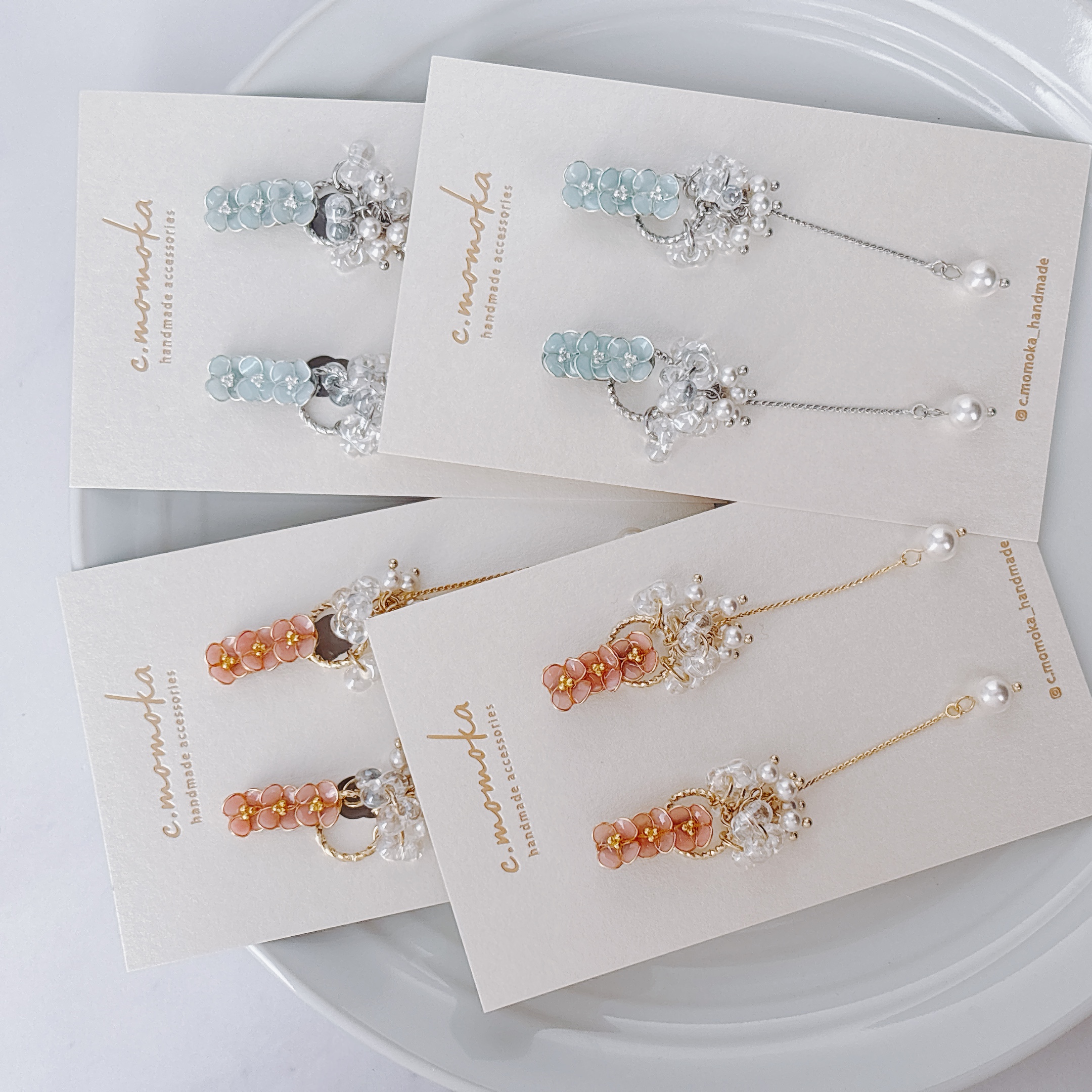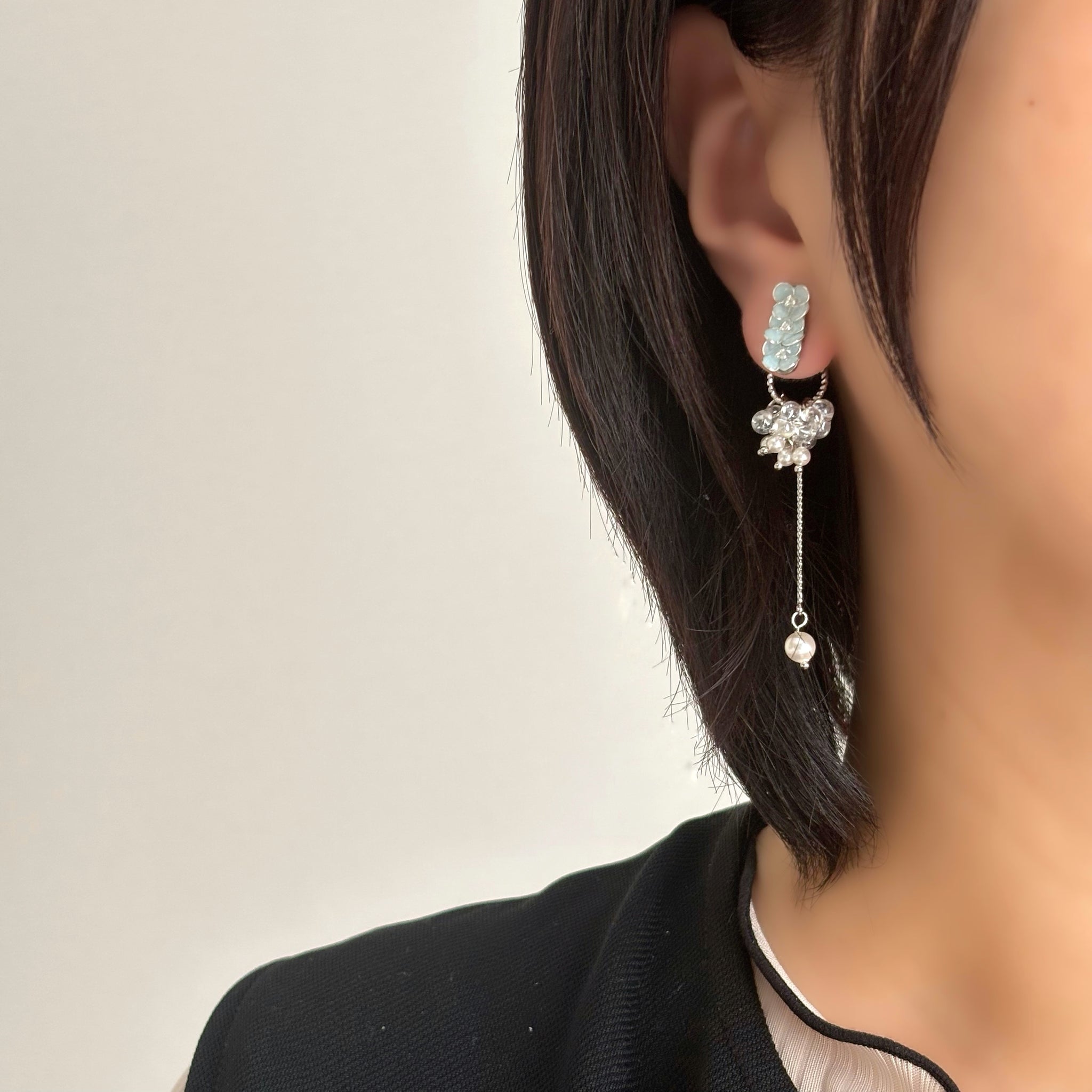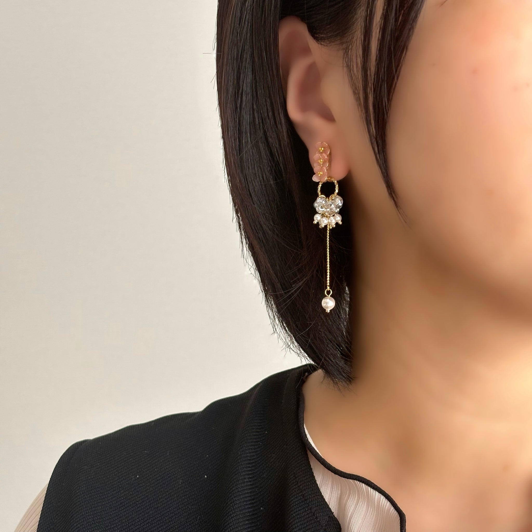 ワイヤーで1つひとつ丁寧に咲かせたフラワーモチーフのアクセサリーです。 約7mmほどの小さなお花たちを、淡くやさしい色合いで仕上げています。 大人の日常に、ほんのり甘さを添える小花アクセサリーをお楽しみください。
