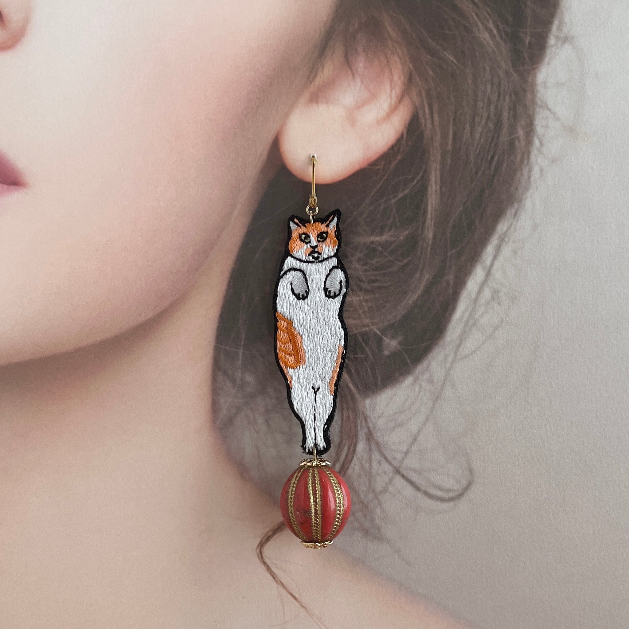 玉乗りするネコ・ボブの耳飾り|maltamarie(マルタマリエ)