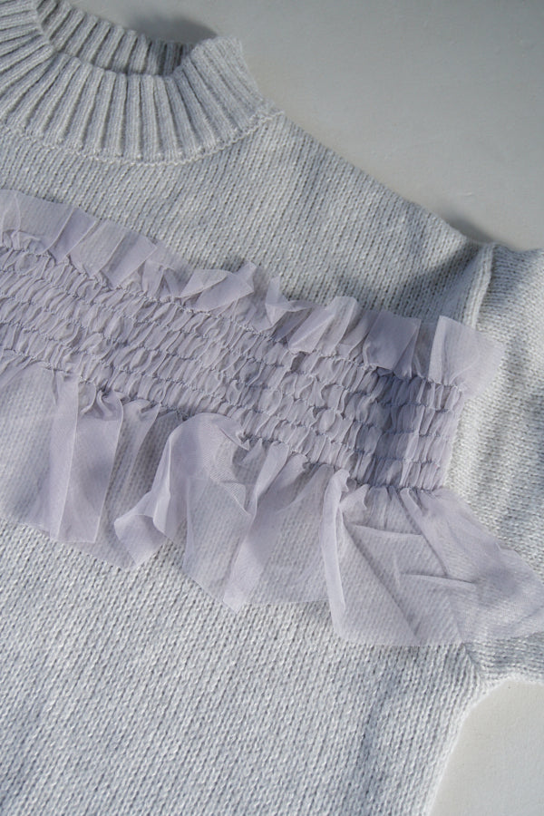 ふんわりニットに、軽やかなシアーフリルを散りばめた主役級トップス。