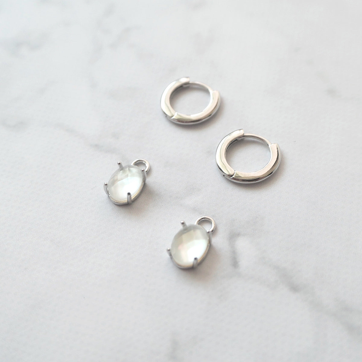 やさしい光沢を放つマザーオブパールをあしらった、上品なワンタッチピアス。