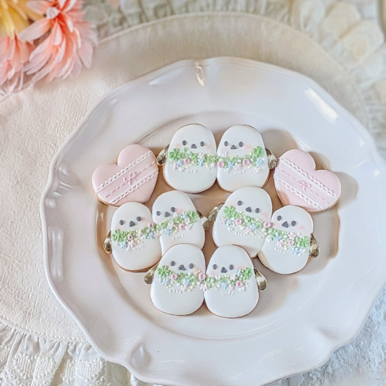 箱を開けると広がる上品な彩りをまとった大人可愛いアイシングクッキーと、香ばしく焼き上げたクッキーの調和。