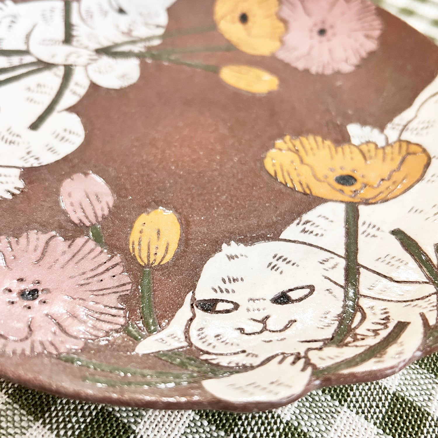 「掻き落とし」という技法で、ひとつひとつ絵の具を塗り、土を削って絵付けをして制作しています。 世界に一つだけの表情を持った陶作品たちをぜひご覧ください。