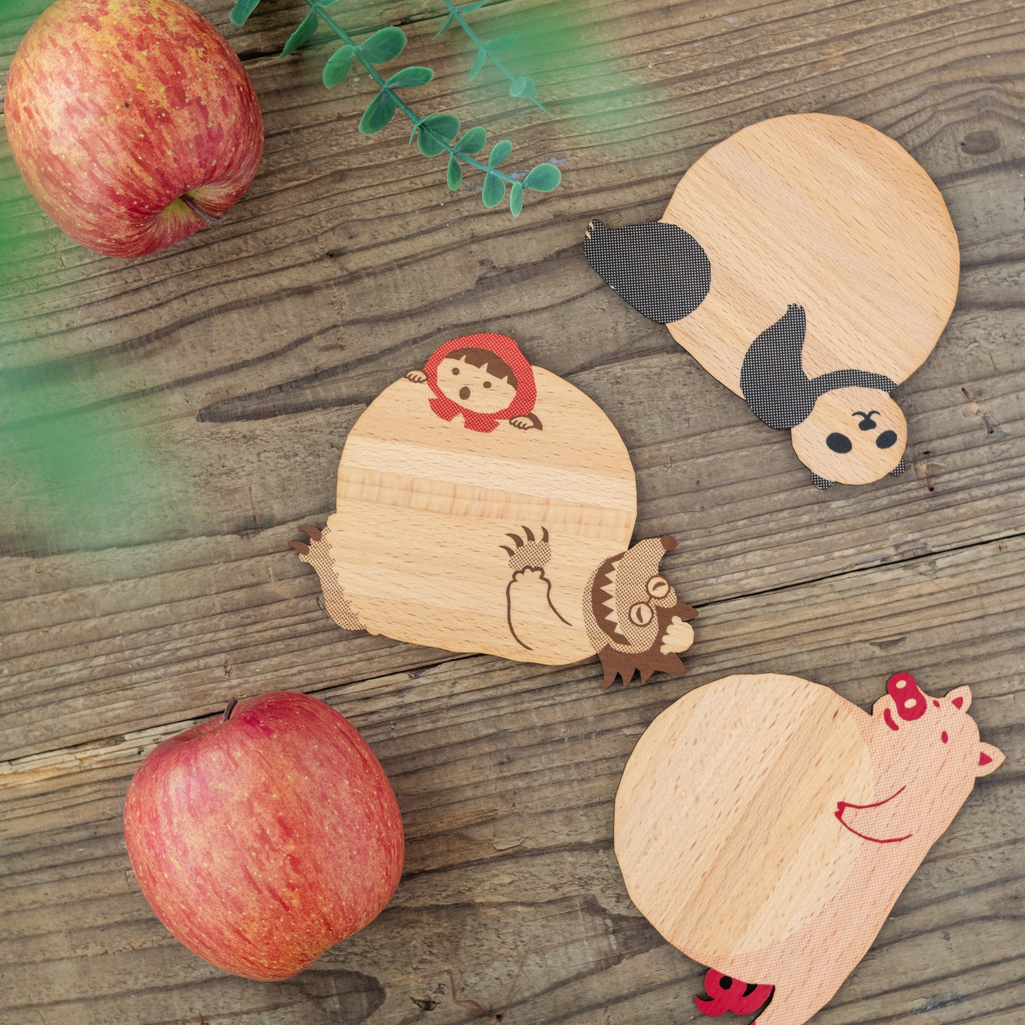 木目の自然な風合いを活かしながら、イラストの発色も美しく仕上げています。