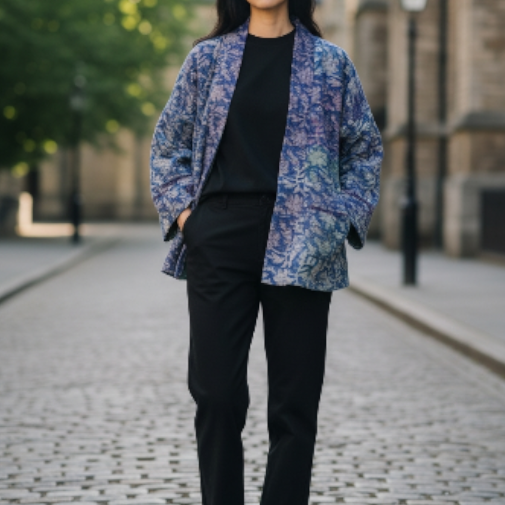 このジャケットは、単なる衣類ではなく、布の歴史を引き継いだ「動くアートピース」です。