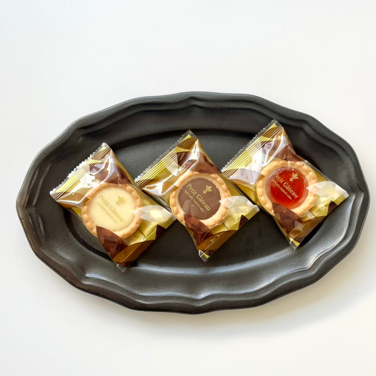 ひと口サイズのタルトにチョコやストロベリージャムを組み合わせた『3種のプチガトー』