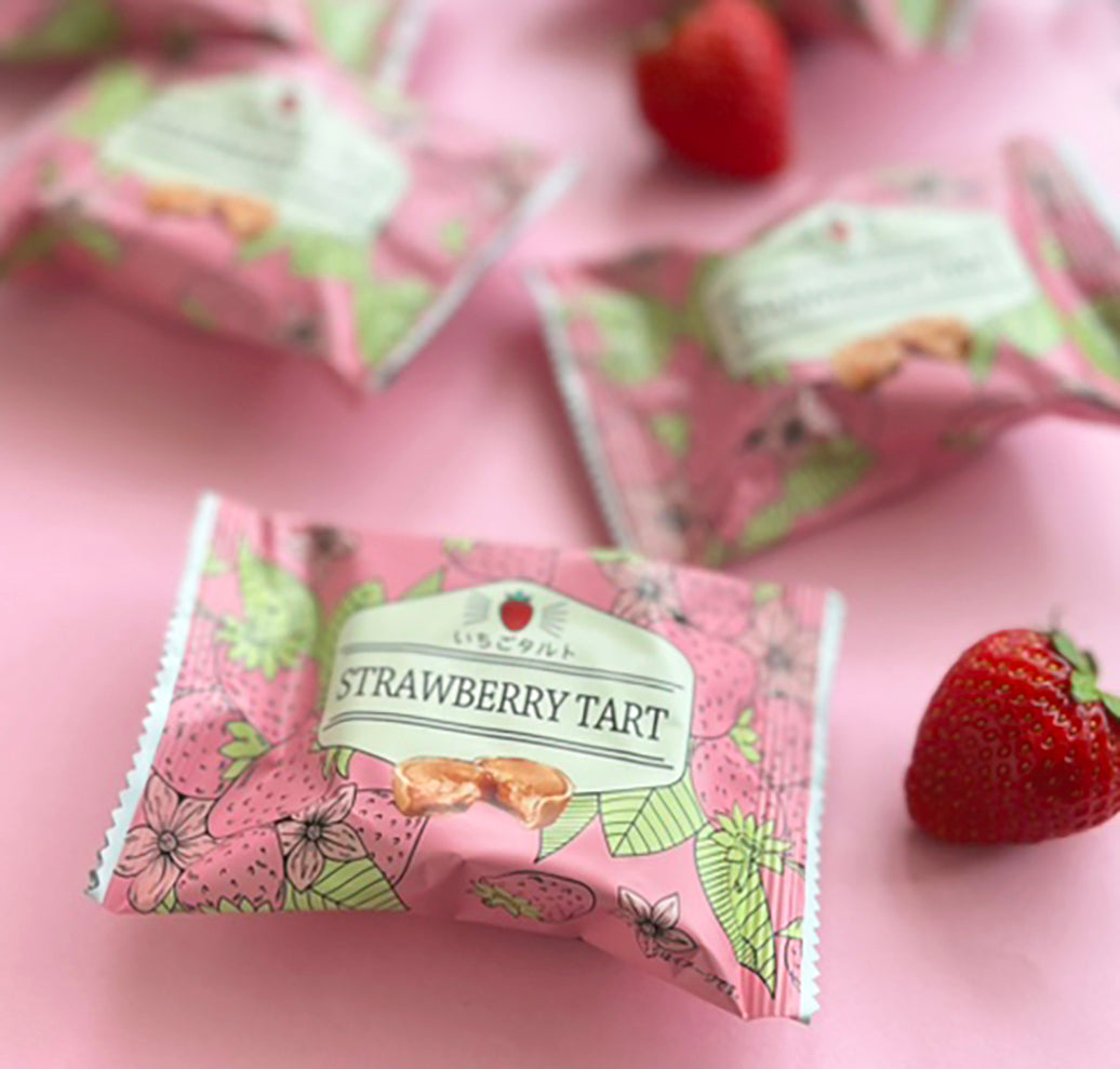 【原材料名】小麦粉(国内製造)、マーガリン、砂糖、いちごジャム、卵、アーモンドパウダー、チョコレートコーチング(砂糖、植物油脂、乳糖、全粉乳、米でん粉、ココアバター)、乳等を主要原料とする食品、加糖れん乳、洋酒、果糖ぶどう糖液糖、食塩/トレハロース、香料、ゲル化剤(増粘多糖類)、着色料(紅麹、カロチン)、酸味料、膨張剤、安定剤(アルギン酸Na、アルギン酸エステル、増粘多糖類)、クエン酸Ca、ポリリン酸Na、pH調整剤、(一部に小麦・卵・乳成分・アーモンド・大豆を含む)