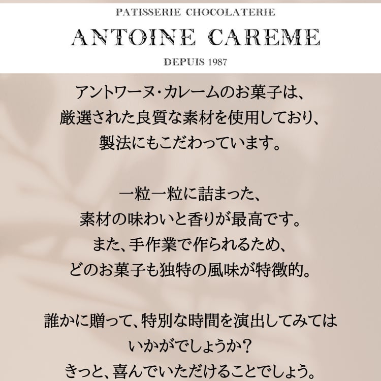 スペシャリテのオランジェットなど贈り物に思いを込め、お菓子つくりをしています。 大切な人への思いを込めた贈り物を見つけてみてください。あなたの大切な瞬間を、より特別なものにするためのお手伝いをいたします。