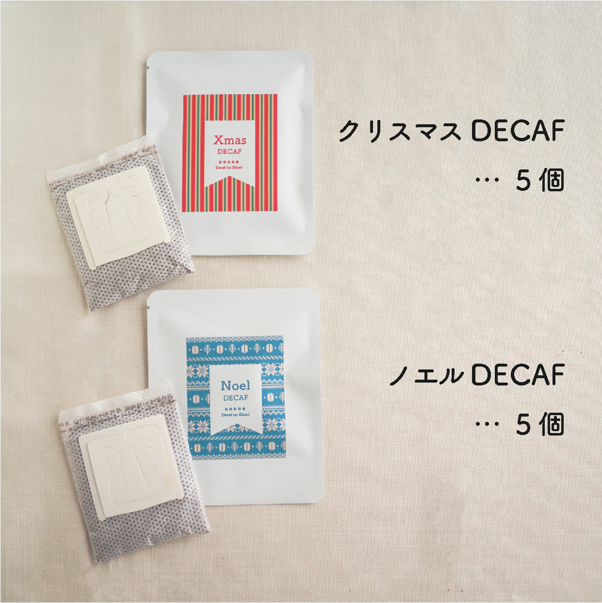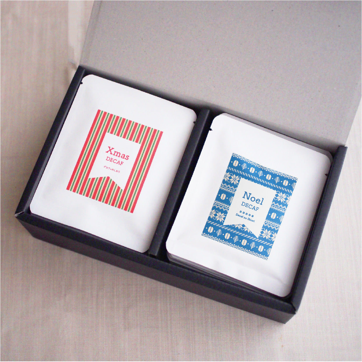 <デカフェ> クリスマスコーヒー2種飲み比べBOXギフト|ドリップバッグ2種(10個入)|デカフェのしおり(デカフェノシオリ)|デカフェのしおり