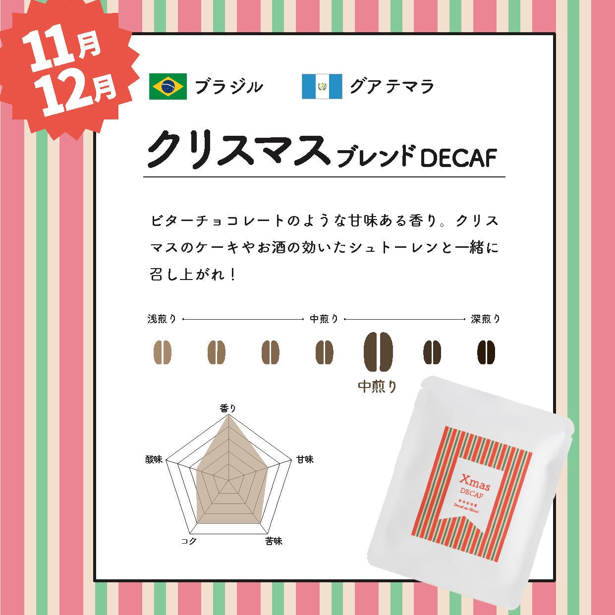 当店で人気のクリスマス限定のデカフェ2種の飲み比べができるコーヒーギフトです。