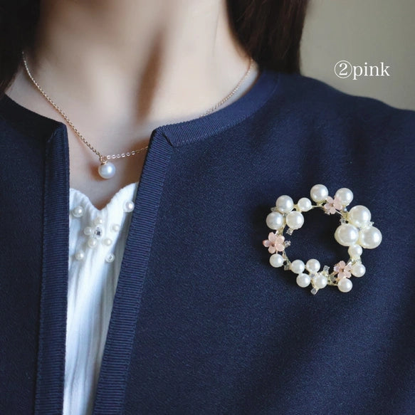 2色からカラーが選べる桜をイメージしたサークルブローチです。