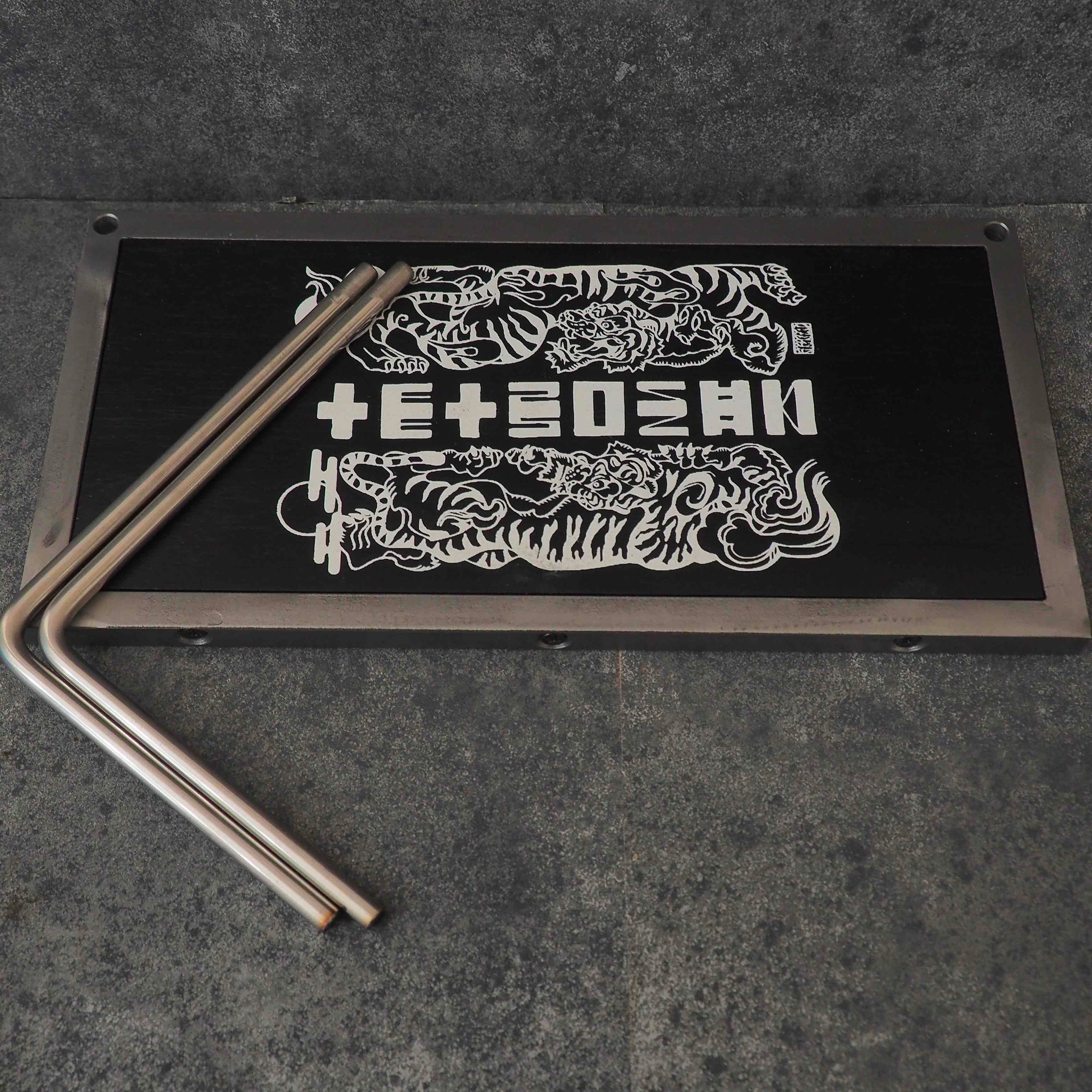 鉄のフレームに、オリジナルデザインの「阿吽の虎」をシルクスクリーンで施しました。