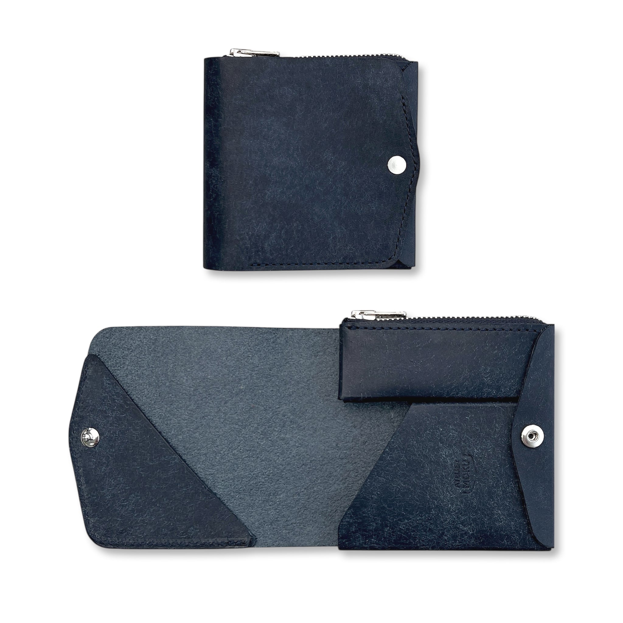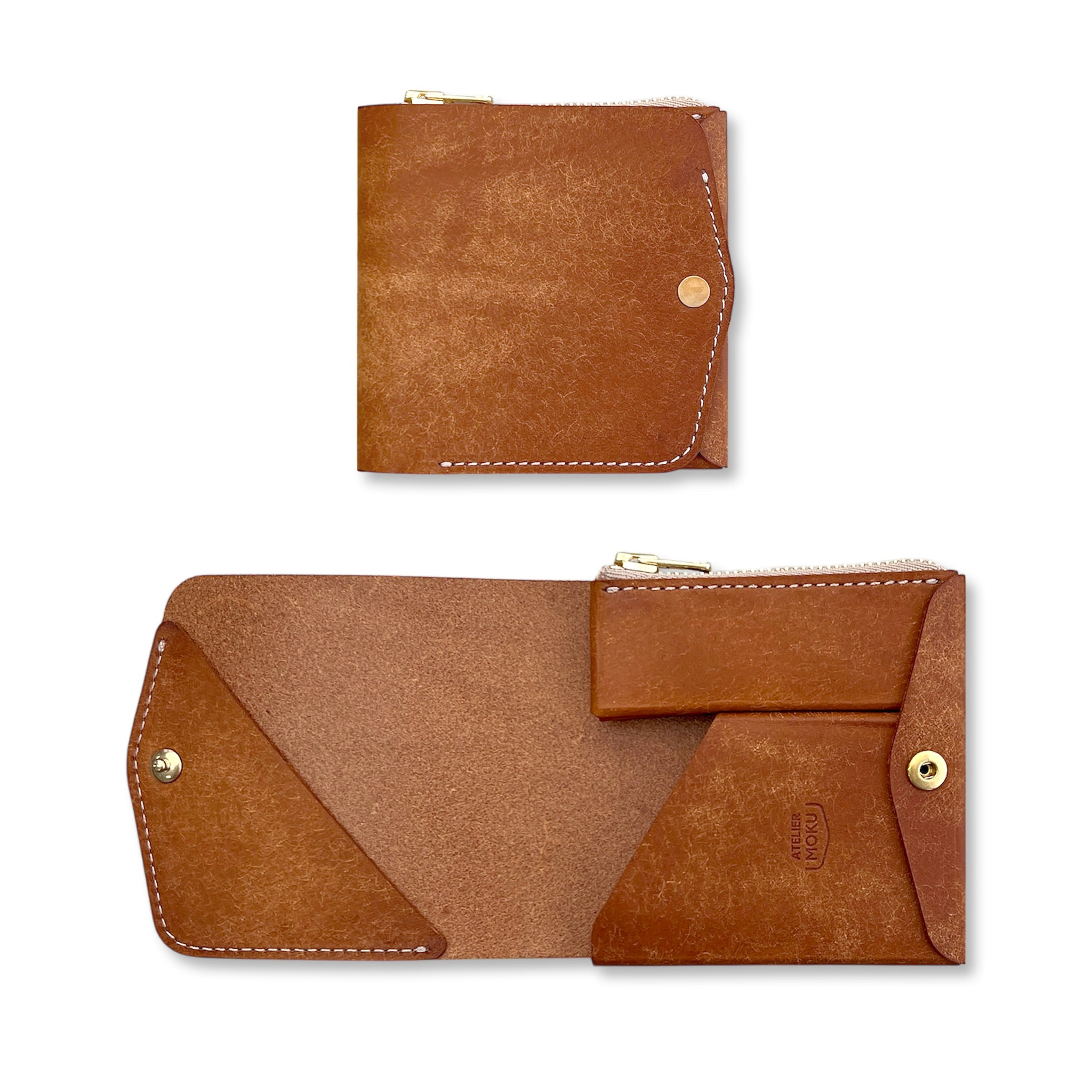 そんな矛盾に逆らい、どちらも兼ね備えたのがこの「Saku」で、私たちmokuの代名詞ともいえる2つ折り財布です。