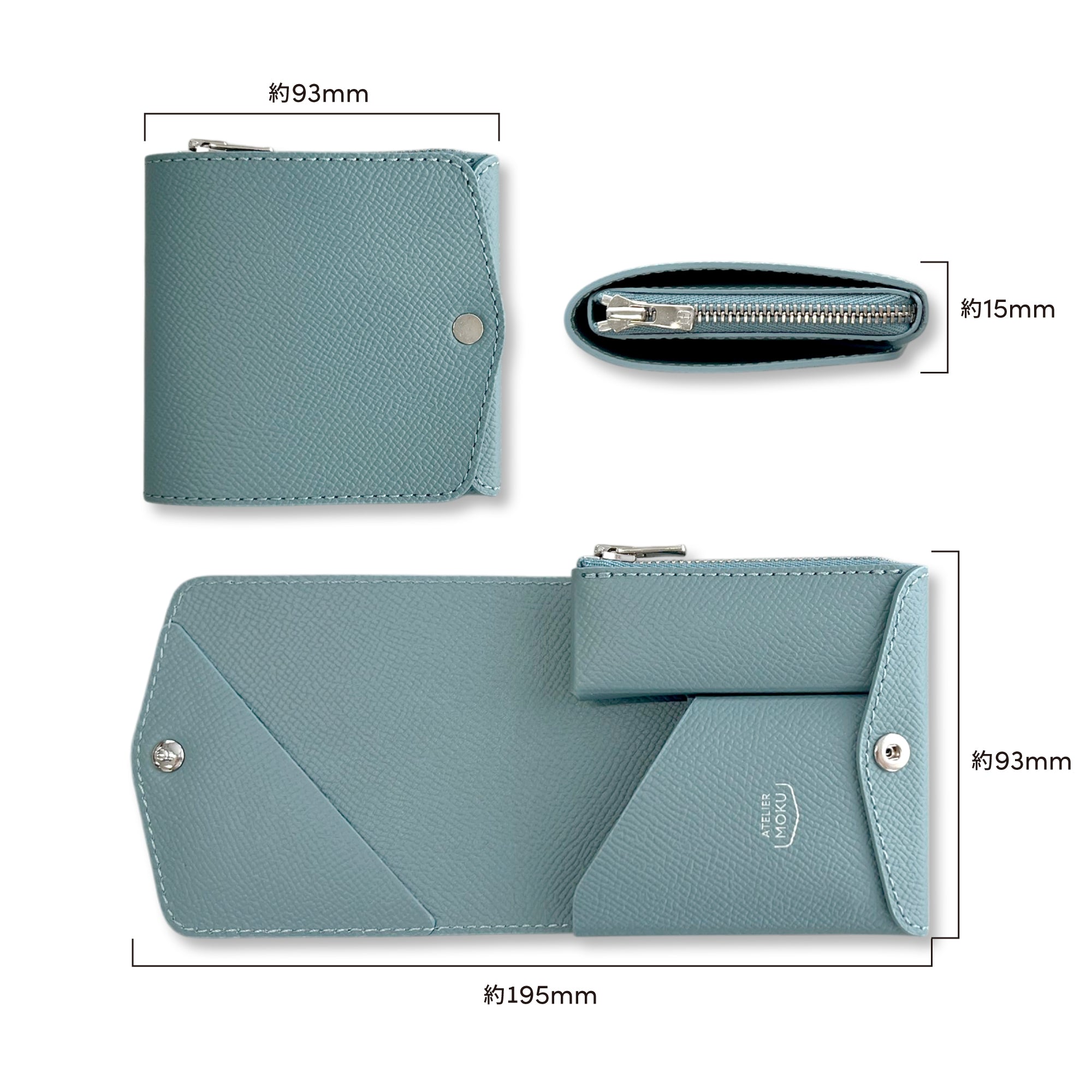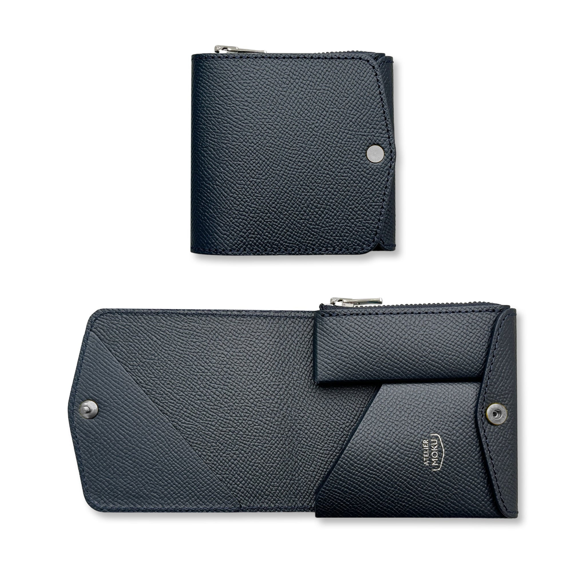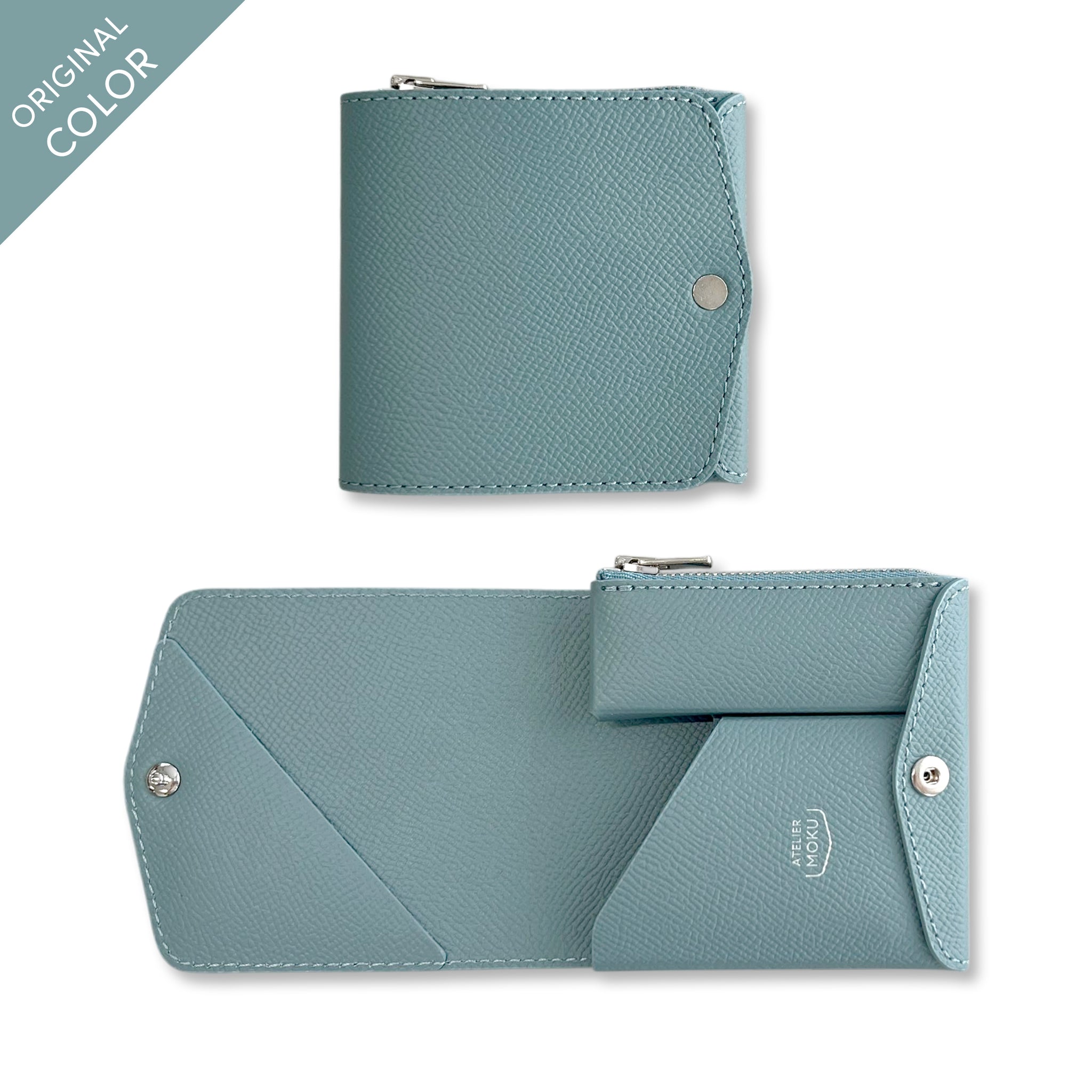 そんな矛盾に逆らい、どちらも兼ね備えたのがこの「SAKU」で、私たちmokuの代名詞ともいえる2つ折り財布です。