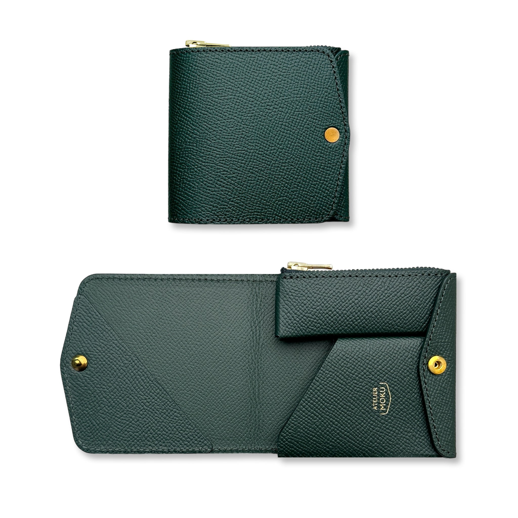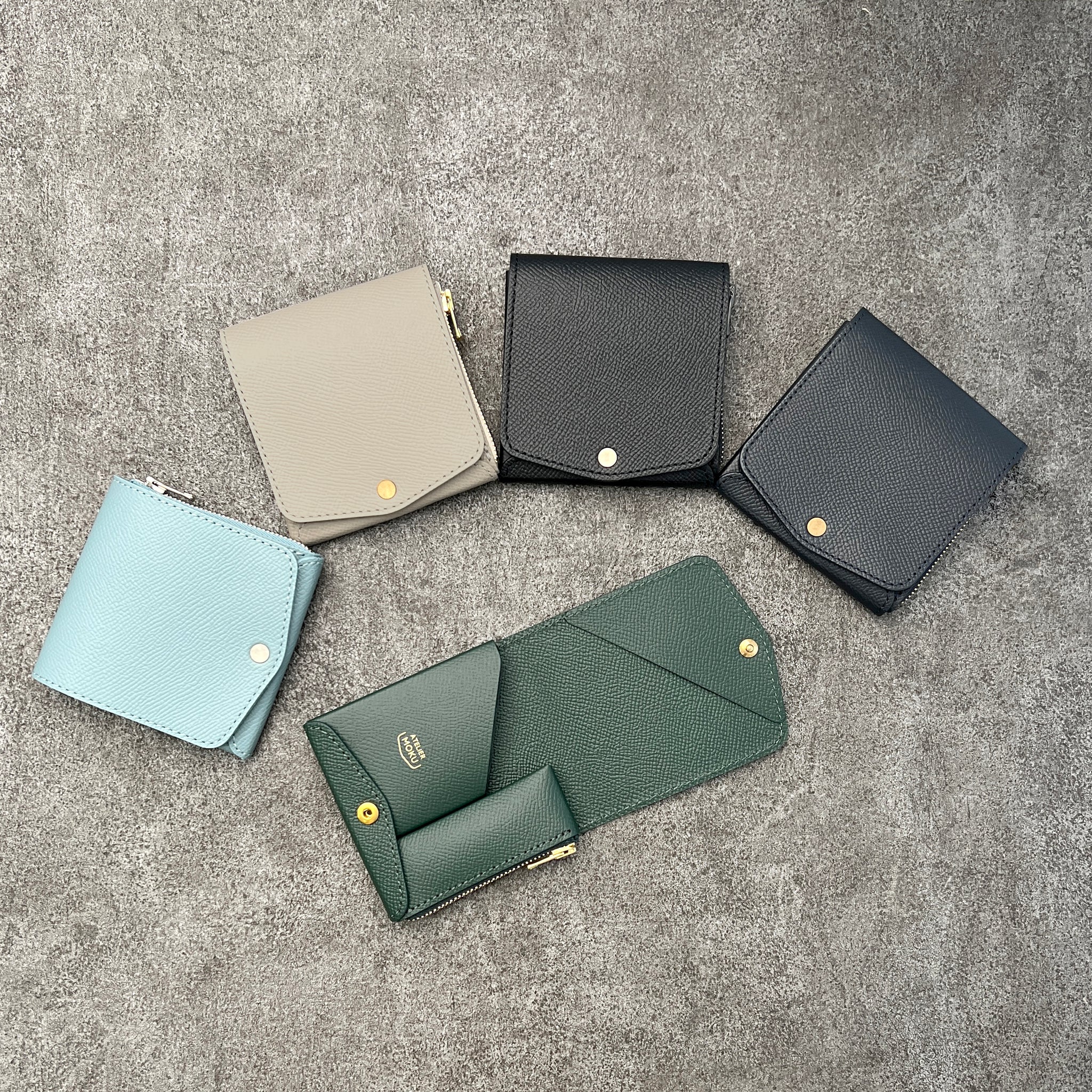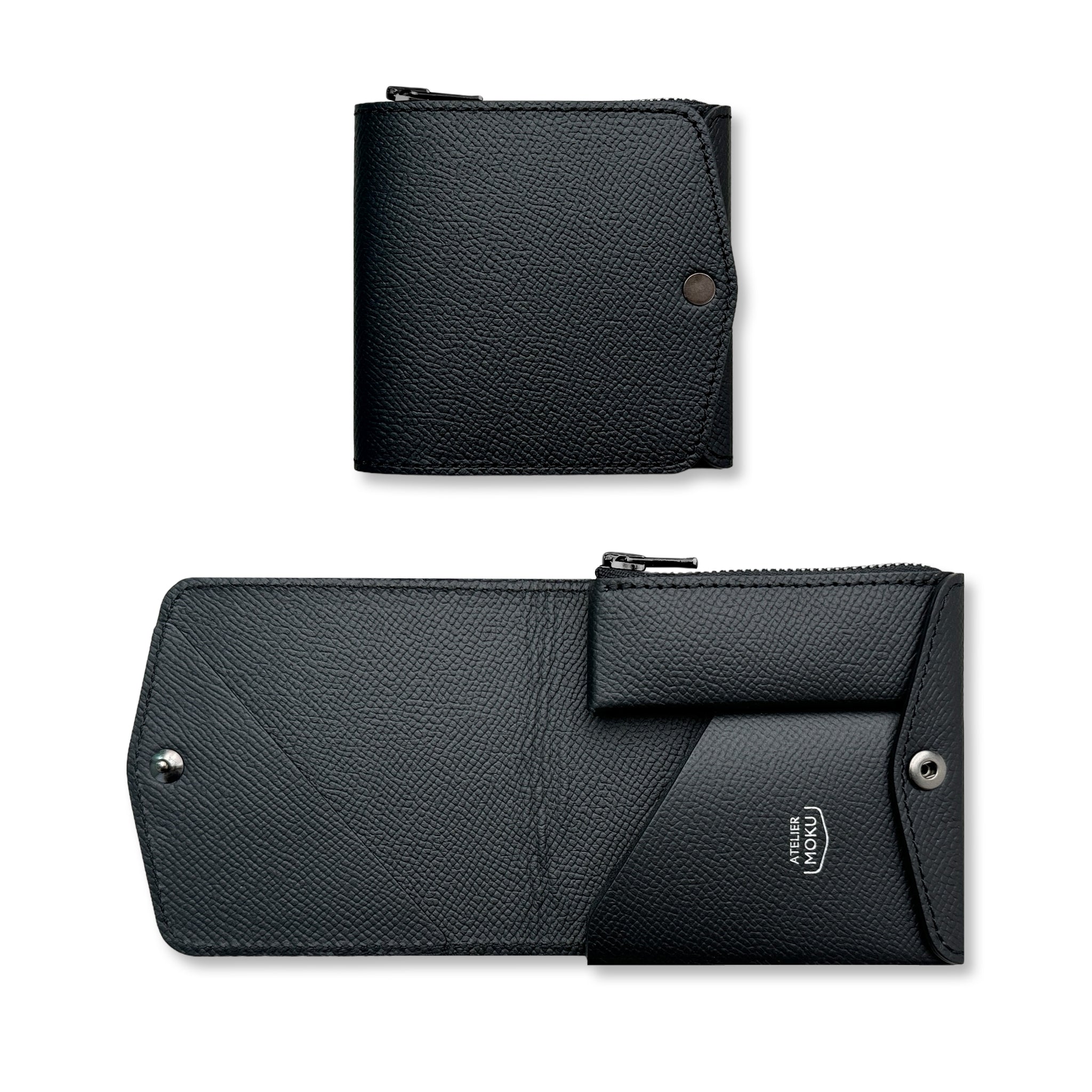 そんな矛盾に逆らい、どちらも兼ね備えたのがこの「SAKU」で、私たちmokuの代名詞ともいえる2つ折り財布です。