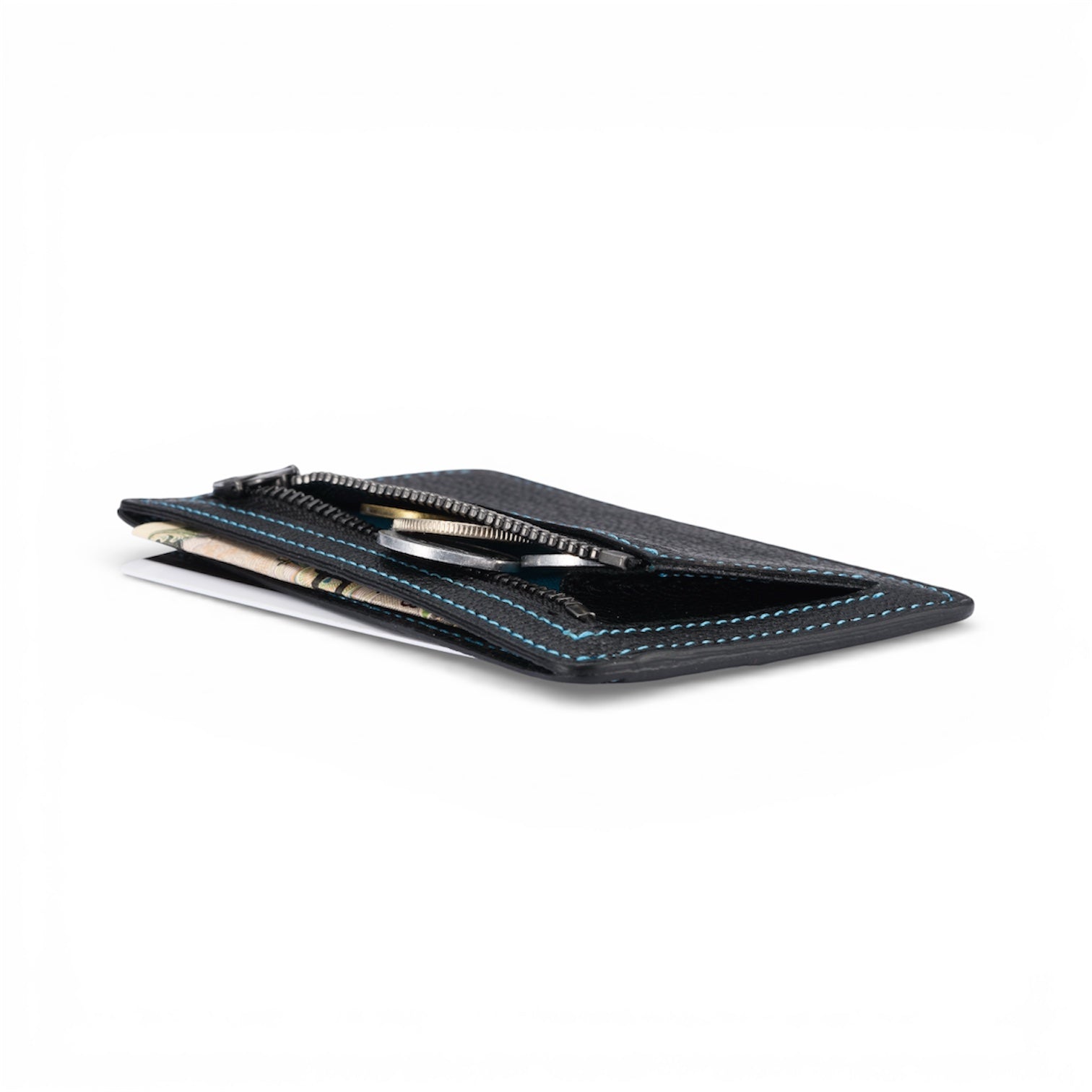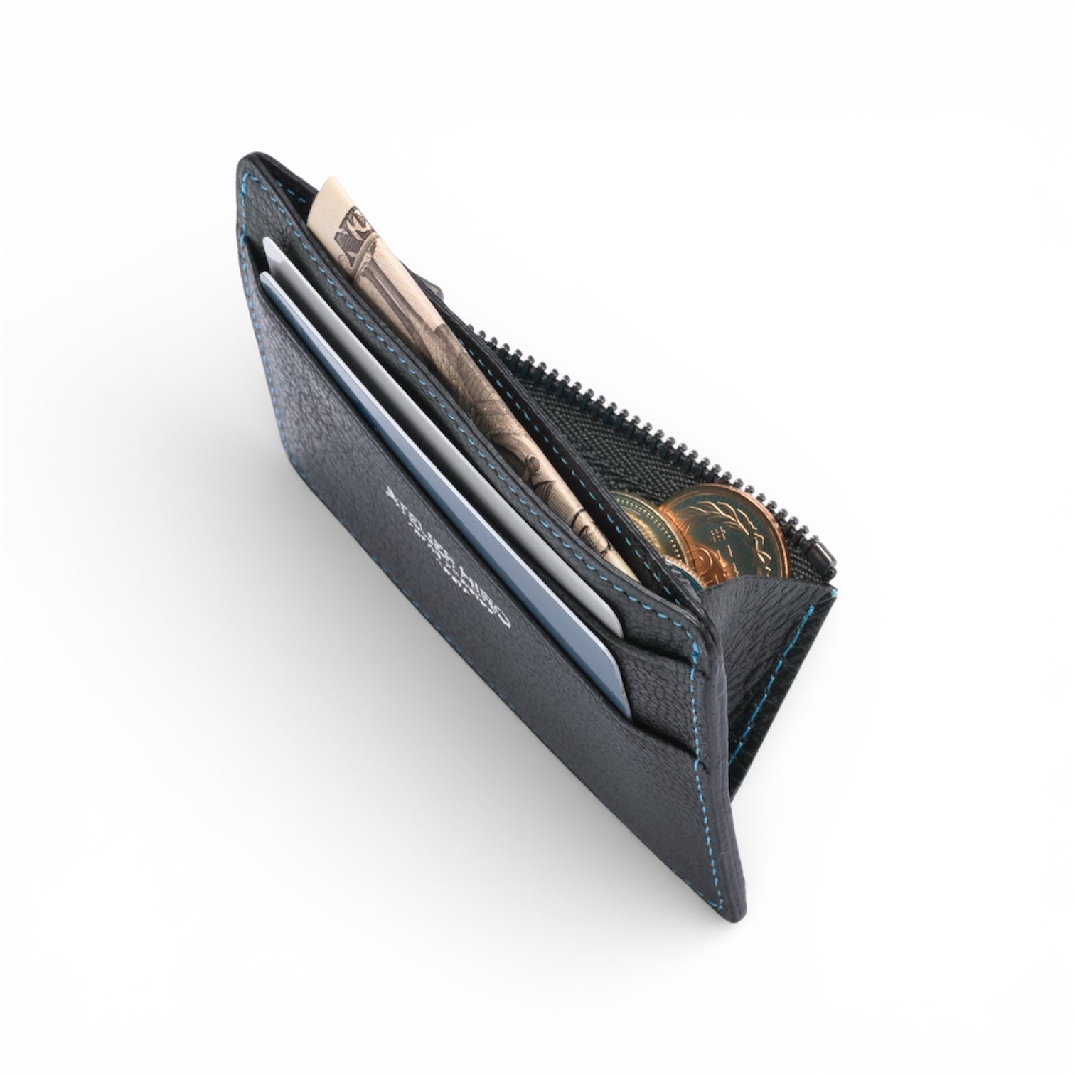 カードポケット2枚のほか、紙幣1/2サイズのオープンポケットと、薄型ファスナーを使用したコインポケットで、機能美を実現しました。