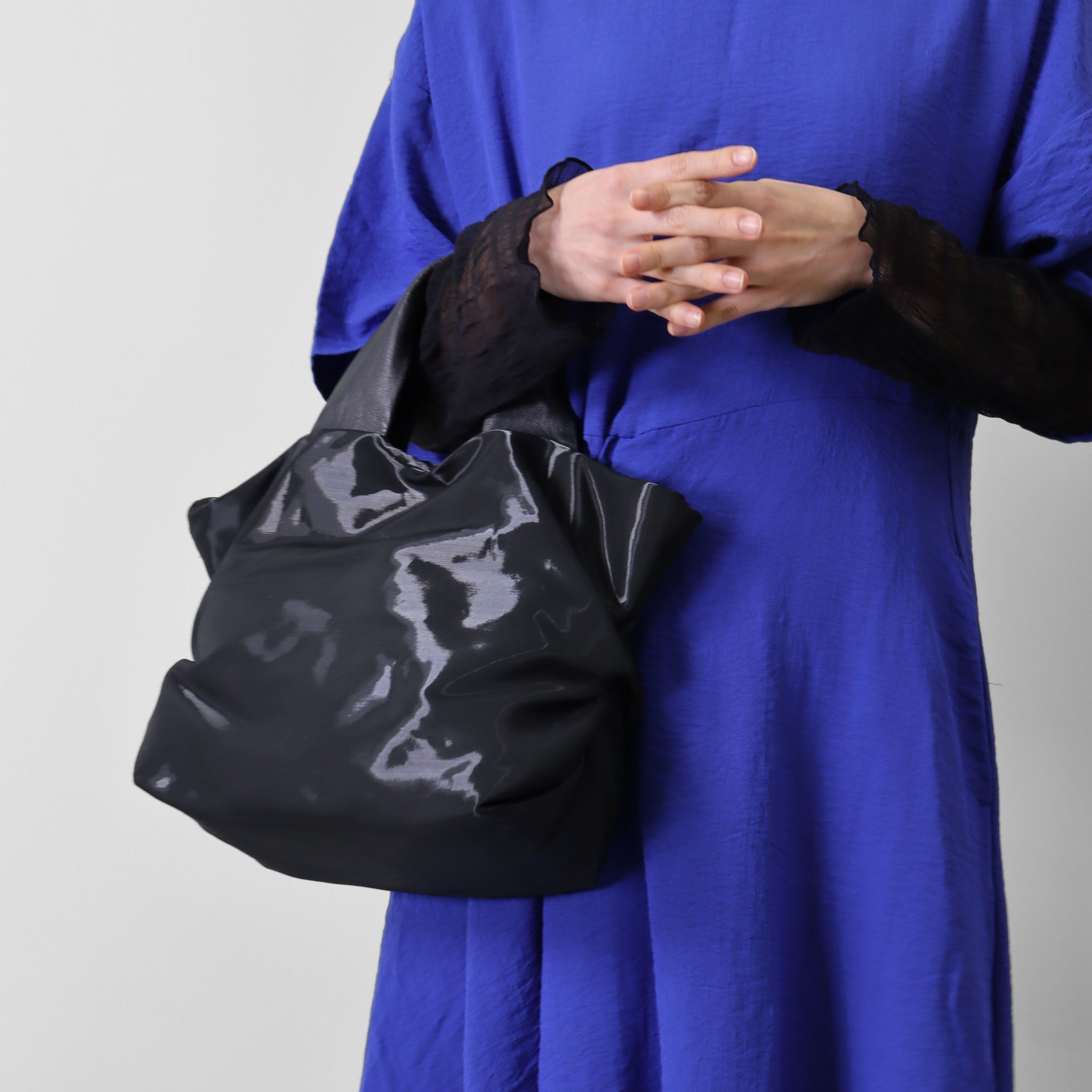 素材の光沢が際立ち、シャープで印象的な表情を見せます。