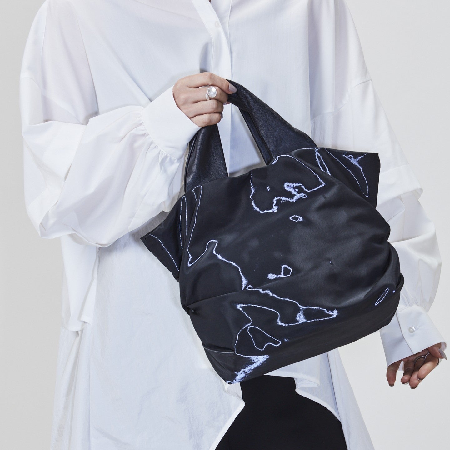 シンプルながらも存在感溢れるハンドバッグ。