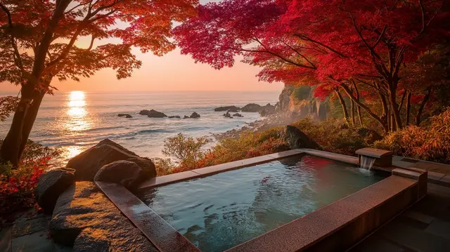 露天風呂から見上げる、季ごとに移ろう自然の彩り。湯けむりに包まれながら、四季の美しさを肌で感じる贅沢。