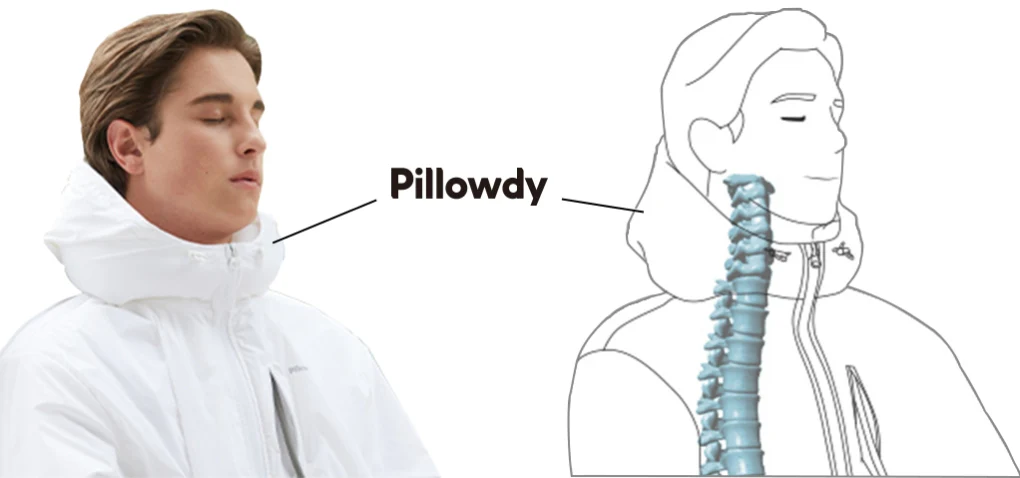 3秒で膨らむネックピローを内蔵したパーカー「Pillowdy」は、