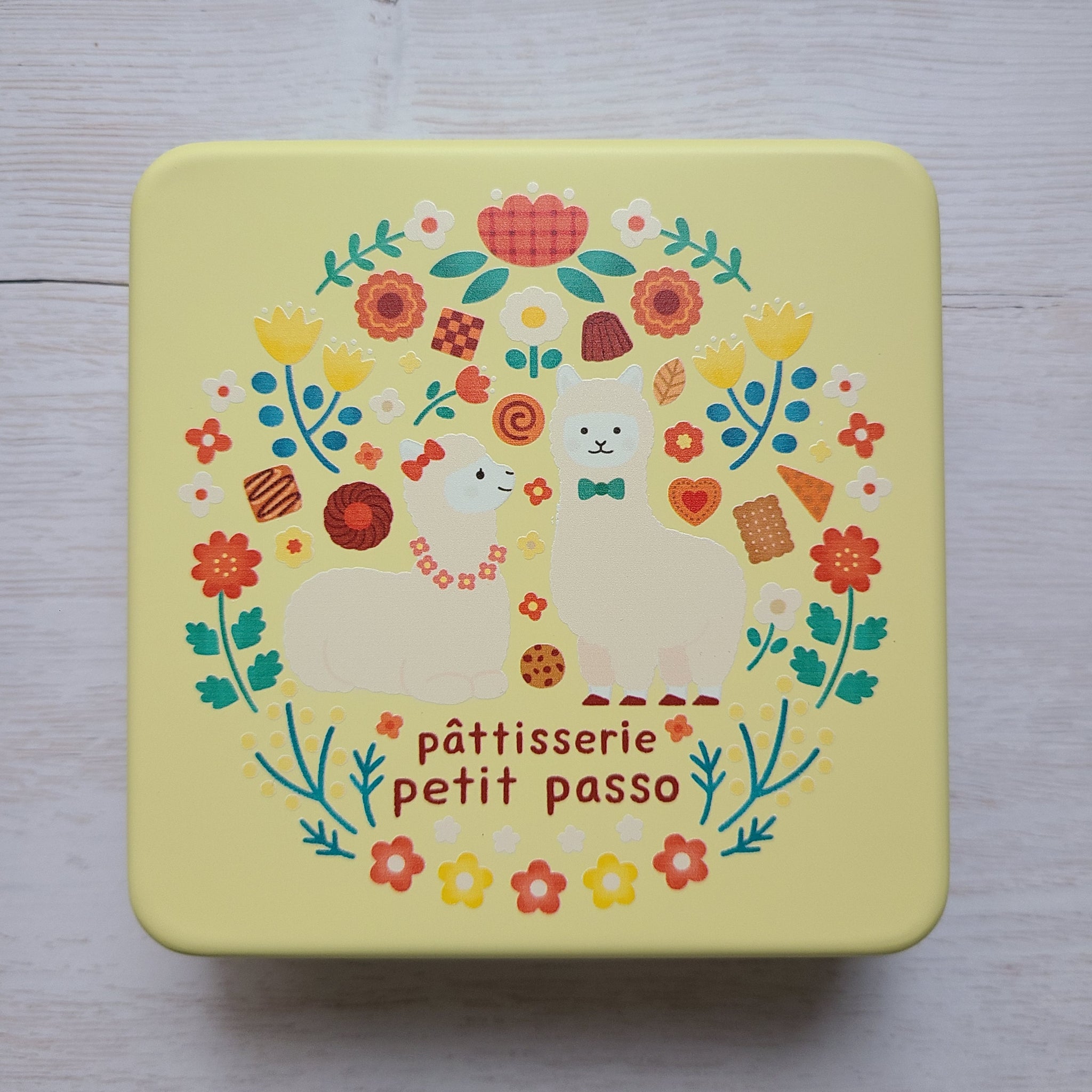 アルパカのパッソくんを中心に 計12種類のクッキーがぎっしりと詰まったクッキー缶です。