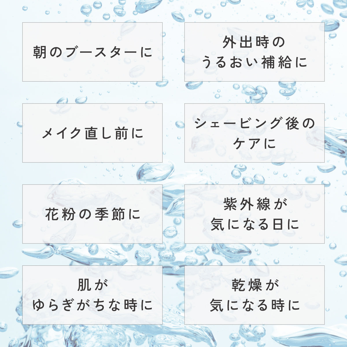 ナノバブル水素水がどんどん吸収され(※角質層まで)、土台からふっくらとするようなお肌を育てます。