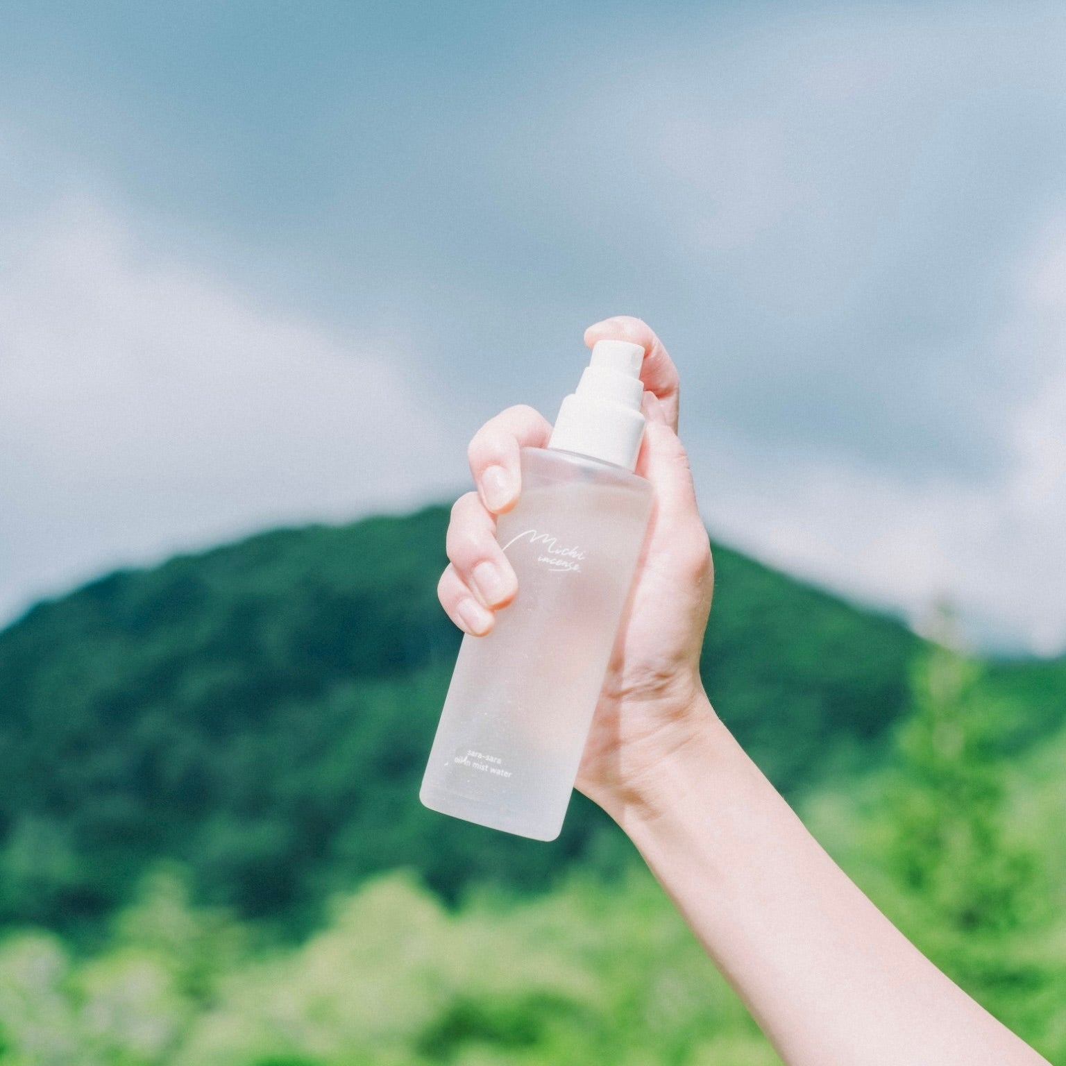 スプレー後は手の表面で軽く肌を押さえるように馴染ませてください。
