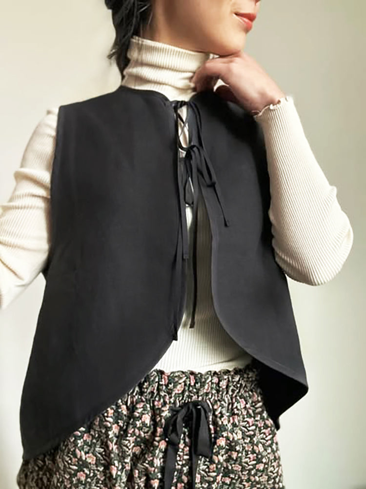 60年代のシンガーから着想を得た、どこか懐かしいムードをまとった一着。表地にはアンティークリネン、裏地には薄手のウールを合わせ、軽さの中にそっと温もりを感じられます。フロントのグログランリボンが愛くるしさを表現。カッティングから背中へと流れるやわらかなライン、後ろ姿に印象を残すインバーテッドプリーツ。細部までこだわり、愛らしいフォルムにほんの少しメンズライクなニュアンスを忍ばせることで、「upto」らしい佇まいを表現しました。