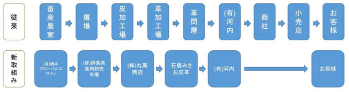 • 群馬県食肉卸売市場、(株)丸萬商店、石居みさお皮革といった、プロフェッショナルなパートナーと最短ルートで連携。