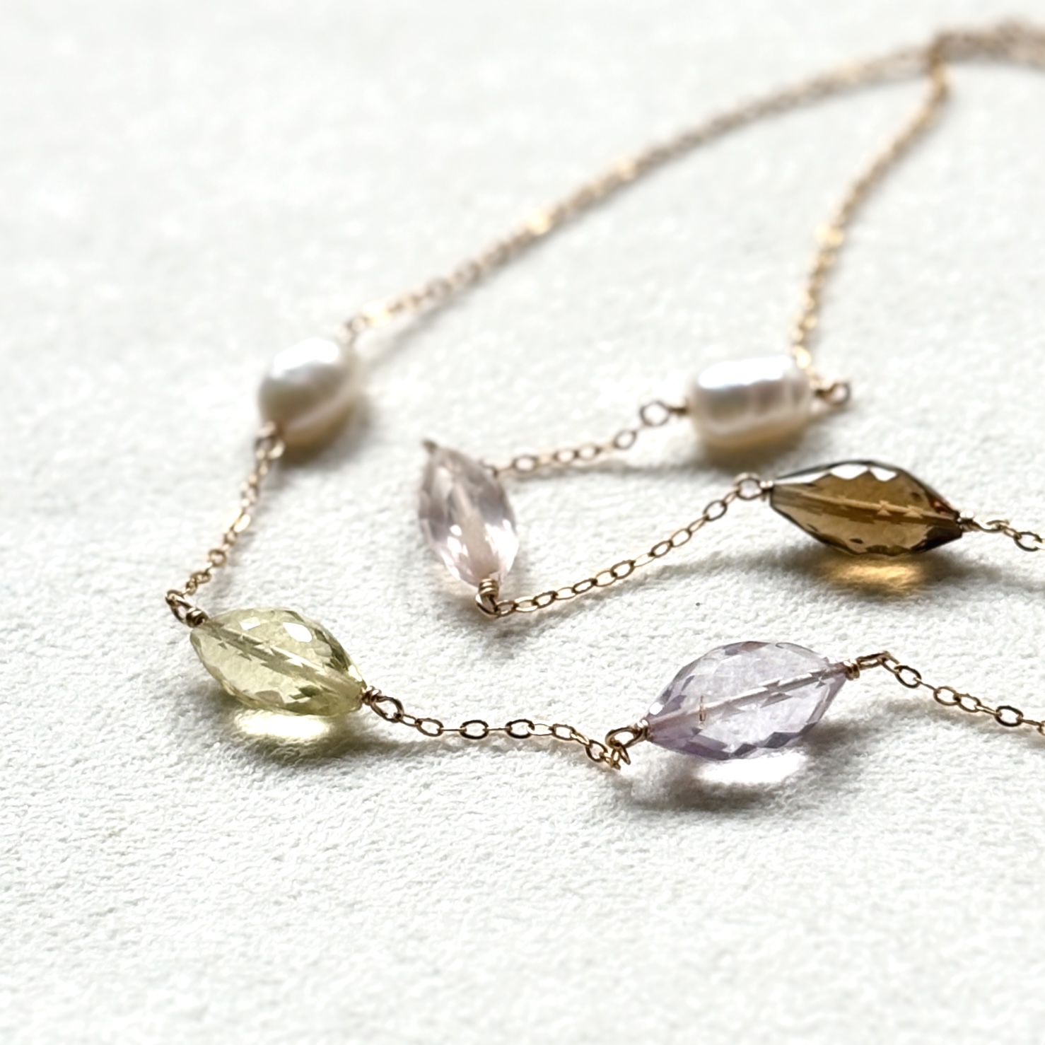 淡水とパステルカラーの天然石ネックレス|beads room mimo(ビーズルームミモ)