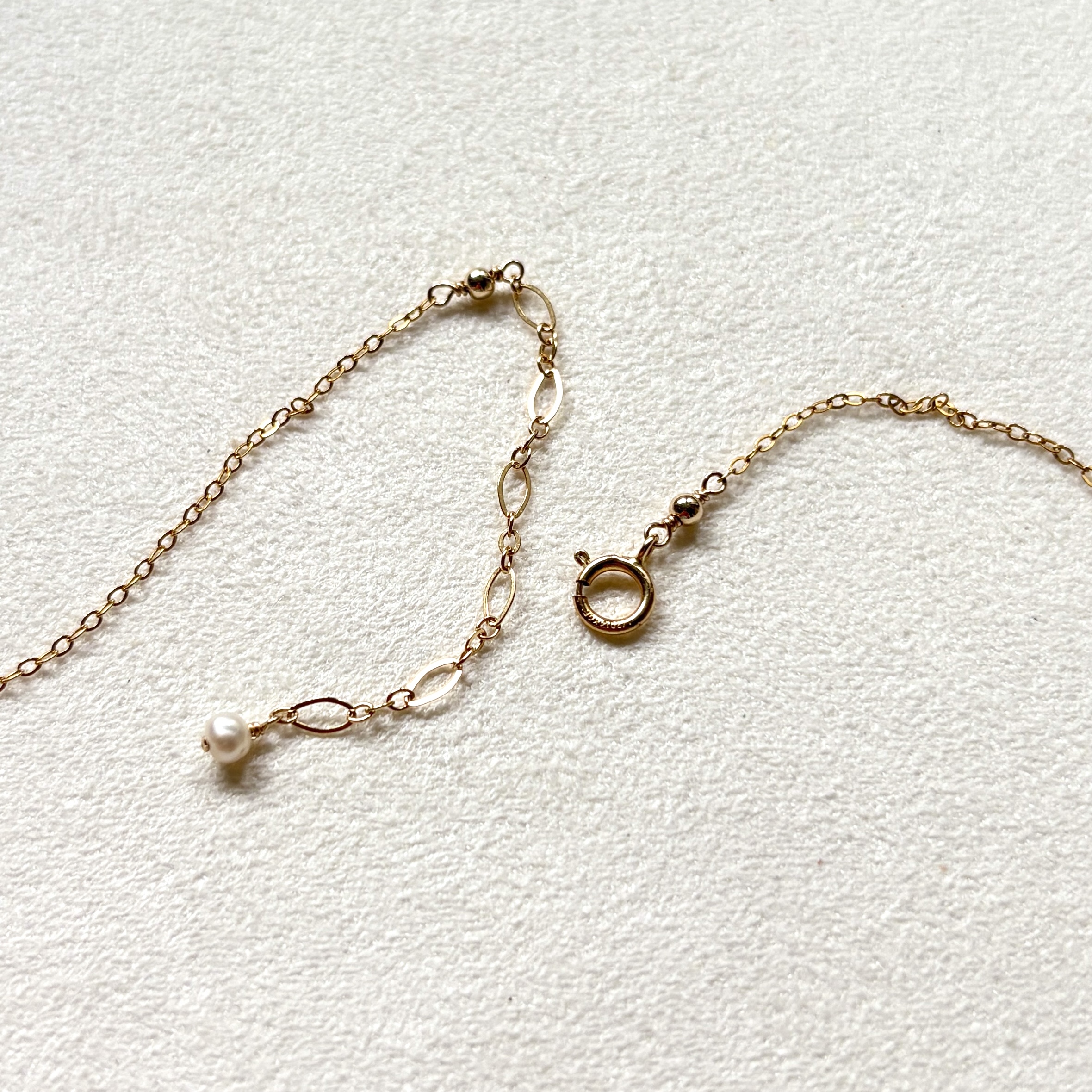 チェーンと留め具は肌に優しく輝きが続く14kgfを使用。