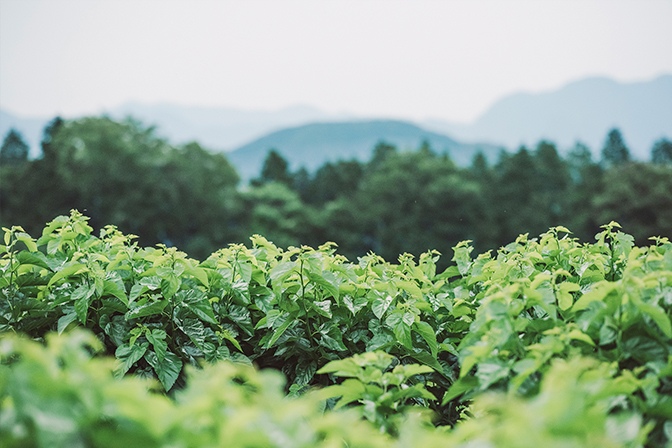 「やまがシルク」を紡ぐカイコが食べるのは、熊本県・山鹿市で独自に栽培している無農薬の桑葉で作った人工飼料。そのため、標高600メートルの山頂に農地面積約25ヘクタールの巨大桑園「天空桑園」を造成し、およそ8万本の桑を無農薬栽培しています。カイコは農薬の影響を非常に強く受けますが、平地から桑園まで遠く離れていることで、ほとんど農薬の影響を受けずにカイコに優しいオーガニックな桑の葉を育てる事が可能です。また、「天空桑園」は長年耕作放棄地として荒れ果てていた農地を甦らせて再生しており、山鹿市の遊休地・耕作放棄地の解消にも貢献しています。