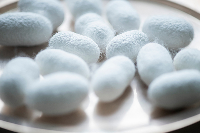 古くから我々と共に生きてきたシルクは、人にもっと近く、かけがえのない存在になるために、今新たな素材として世界中で研究が進んでいます。我々が育てているのは、そんな未来に必要なシルクです。