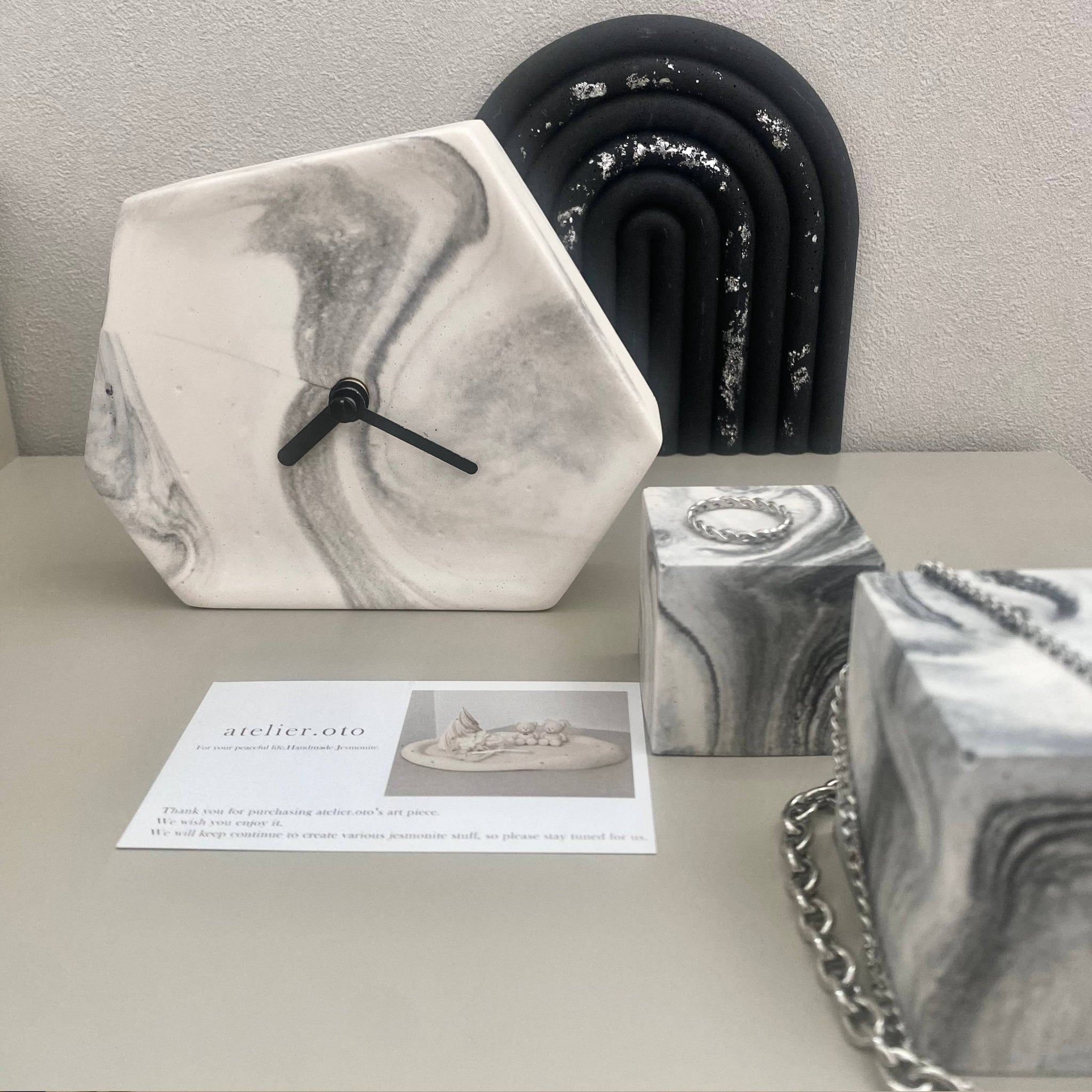 ジェスモナイトは陶器のようなしっとりとしたマットな質感で、環境にも人にも優しいお素材です。