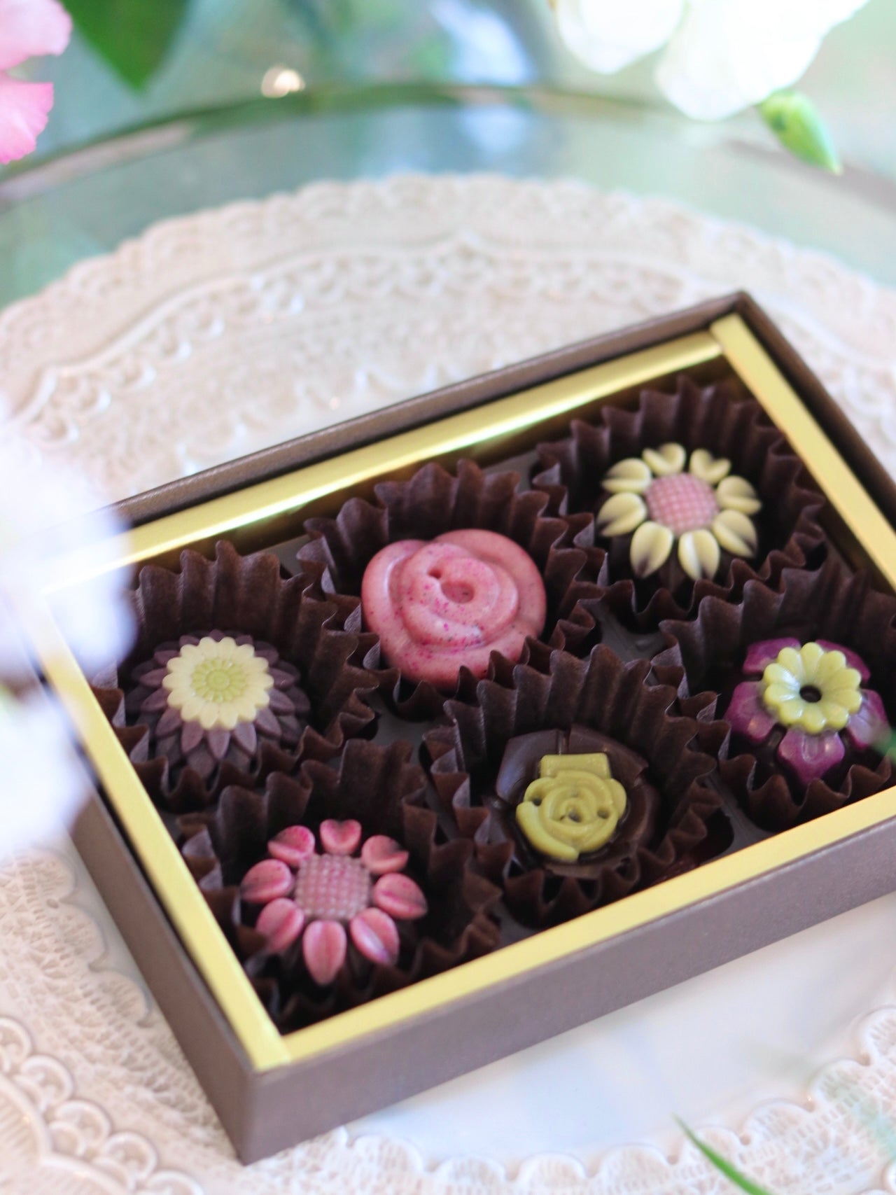 野菜・フルーツ・スーパーフードで色付けされたローチョコレートは