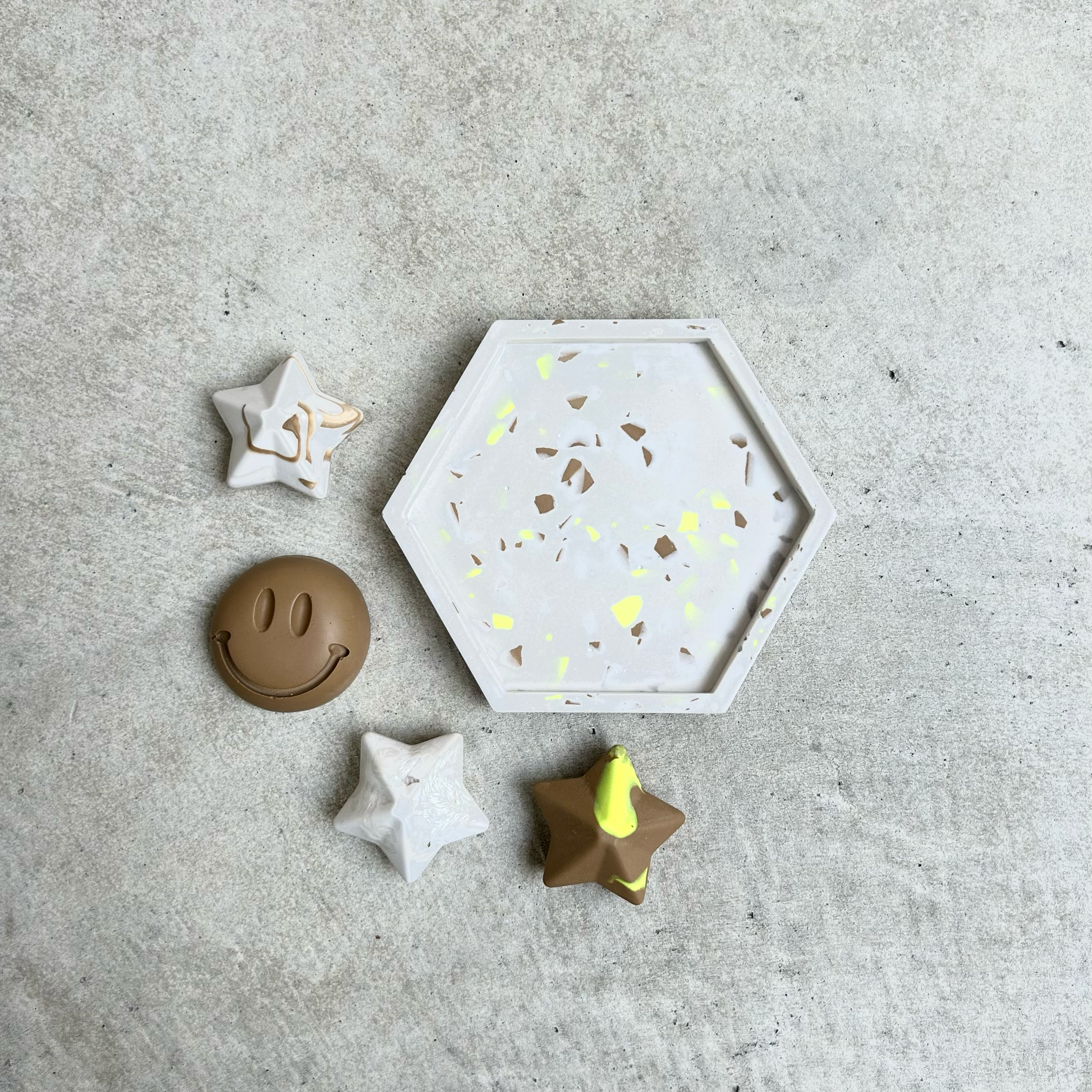 Macrame と Jesmonite (エコレジン)のインテリア雑貨です。
