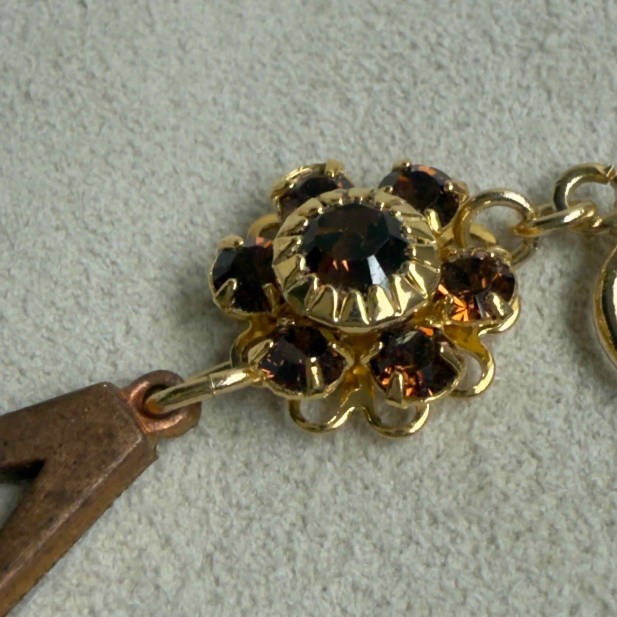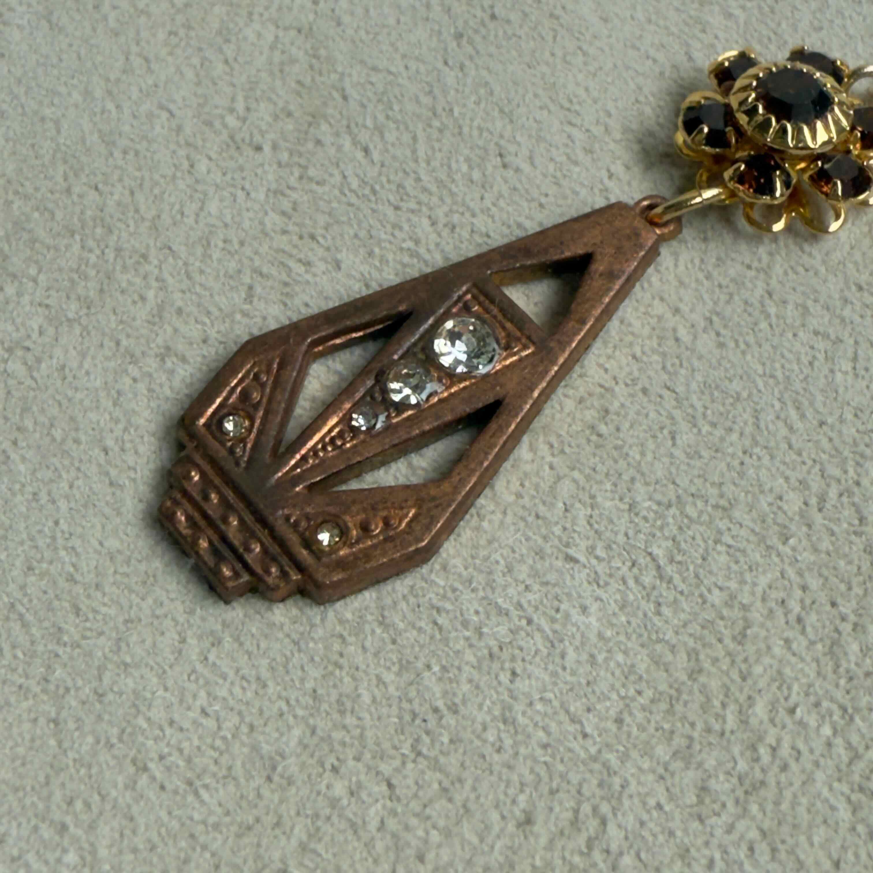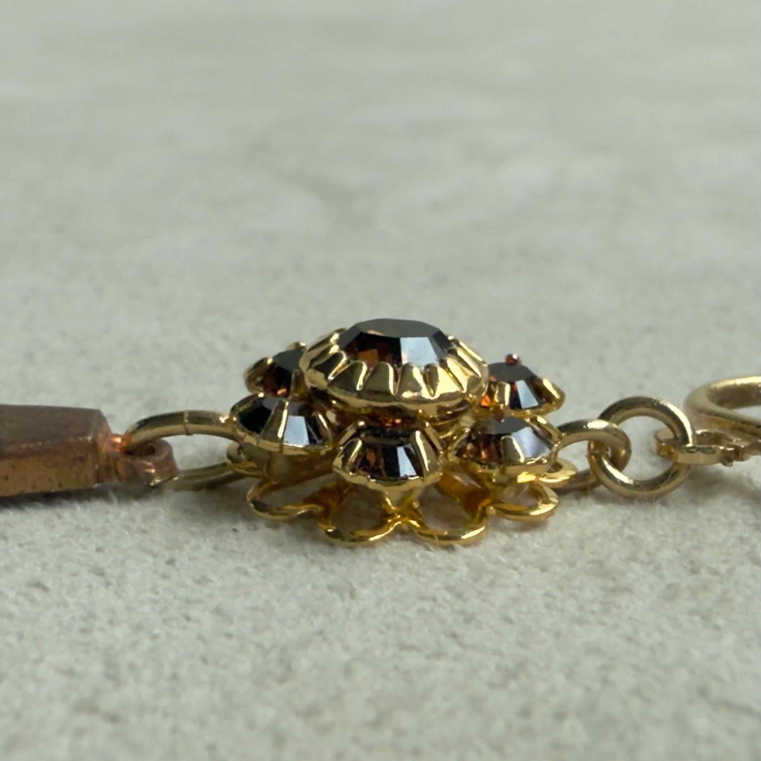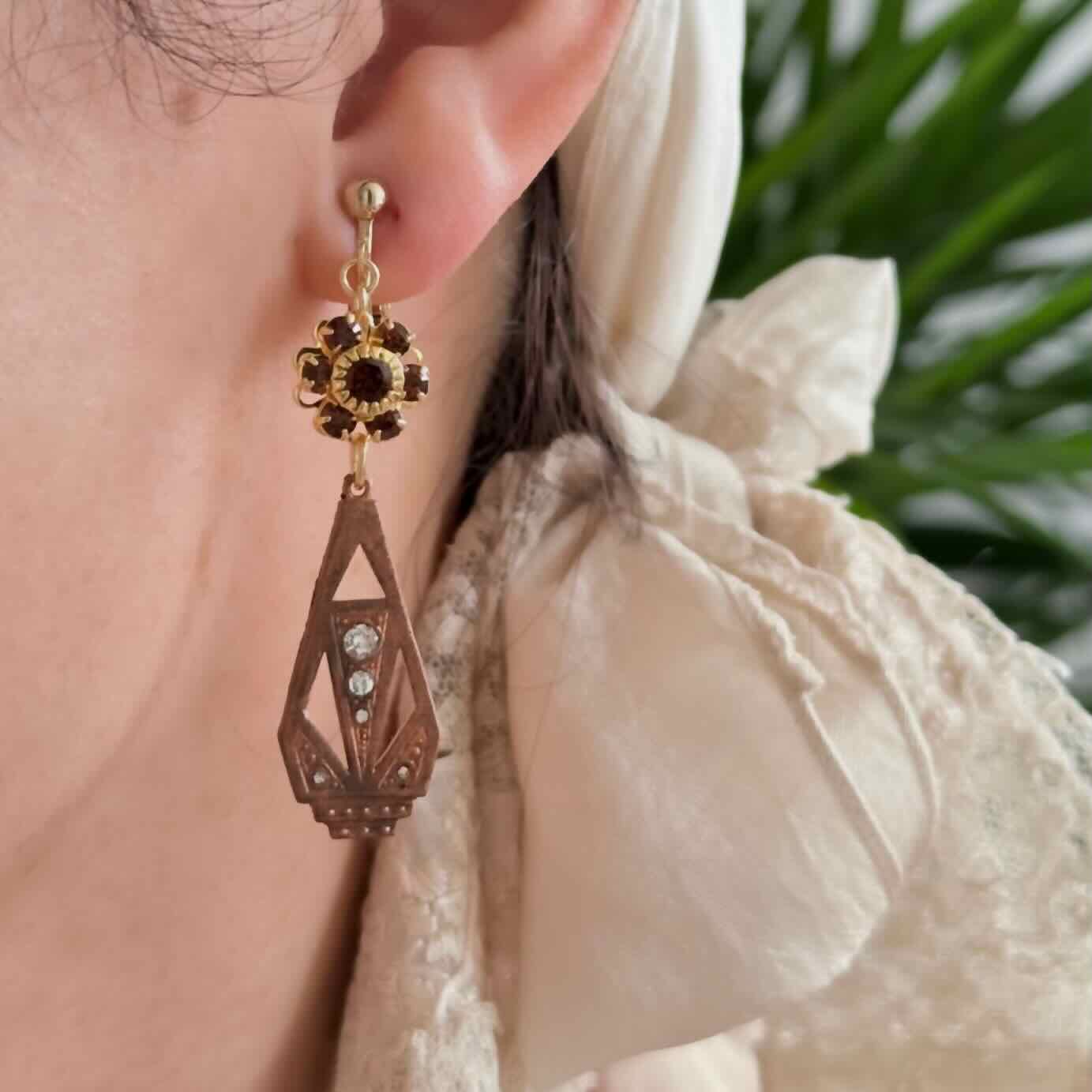 右耳には、深みのあるブラウンカラーのフラワー型ヴィンテージスワロフスキーと、フランスの装飾工房で作られたメタルパーツを。