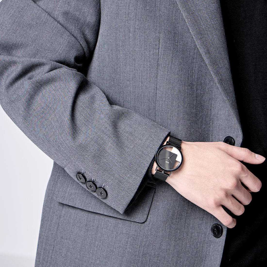 時を知る道具としてだけでなく、アートピースとしても楽しめる洗練されたデザインは、ミニマルでありながら存在感があり、都会的で先進的な印象を与えます。