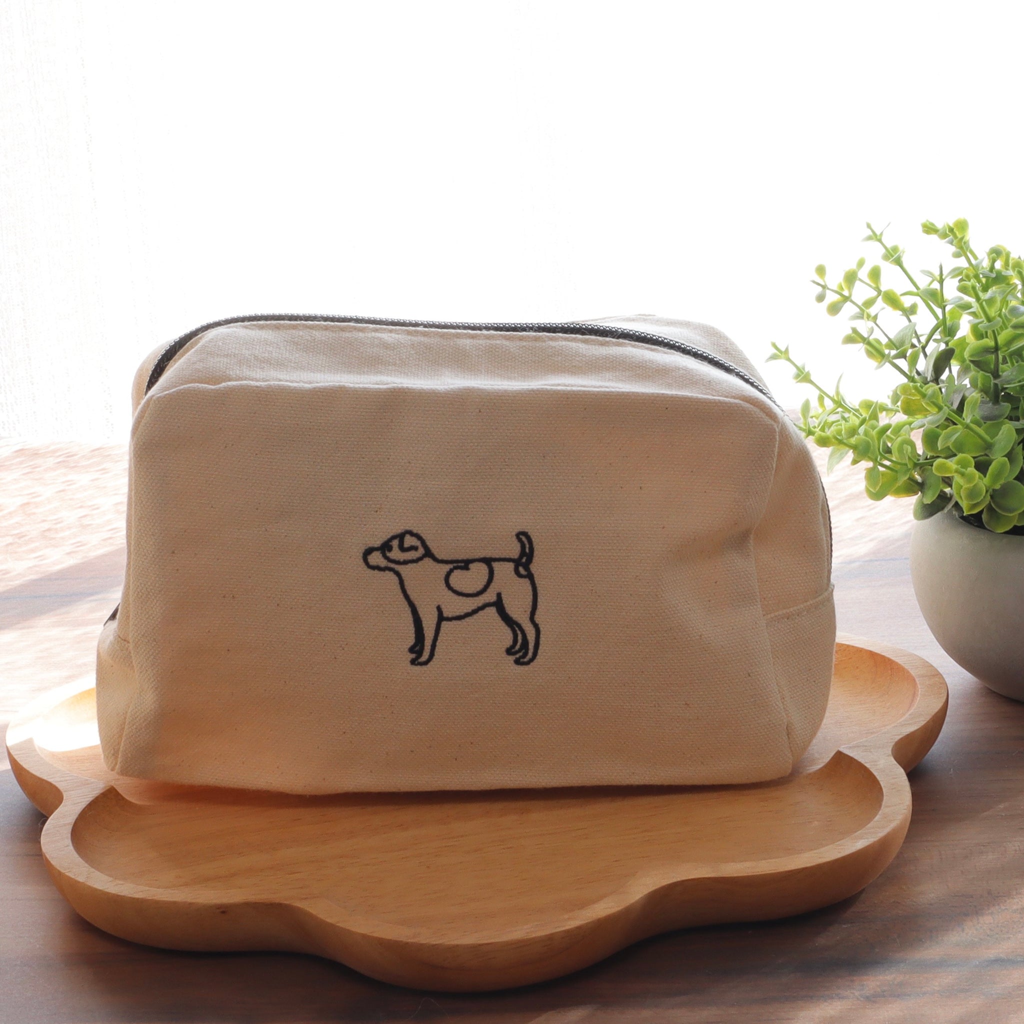 シンプルなジャックラッセルテリアの刺繍が施されたキャンバスポーチです。