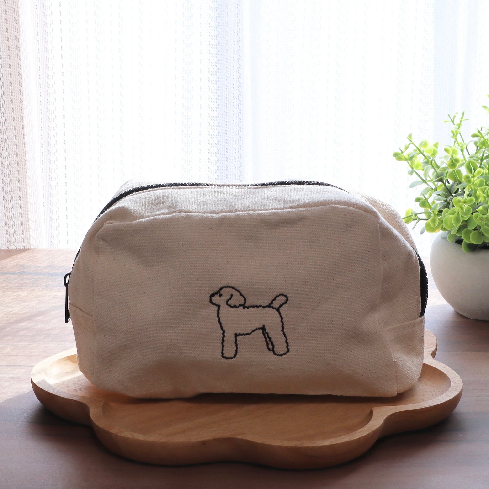 シンプルなトイプードルの刺繍が施されたキャンバスポーチです。