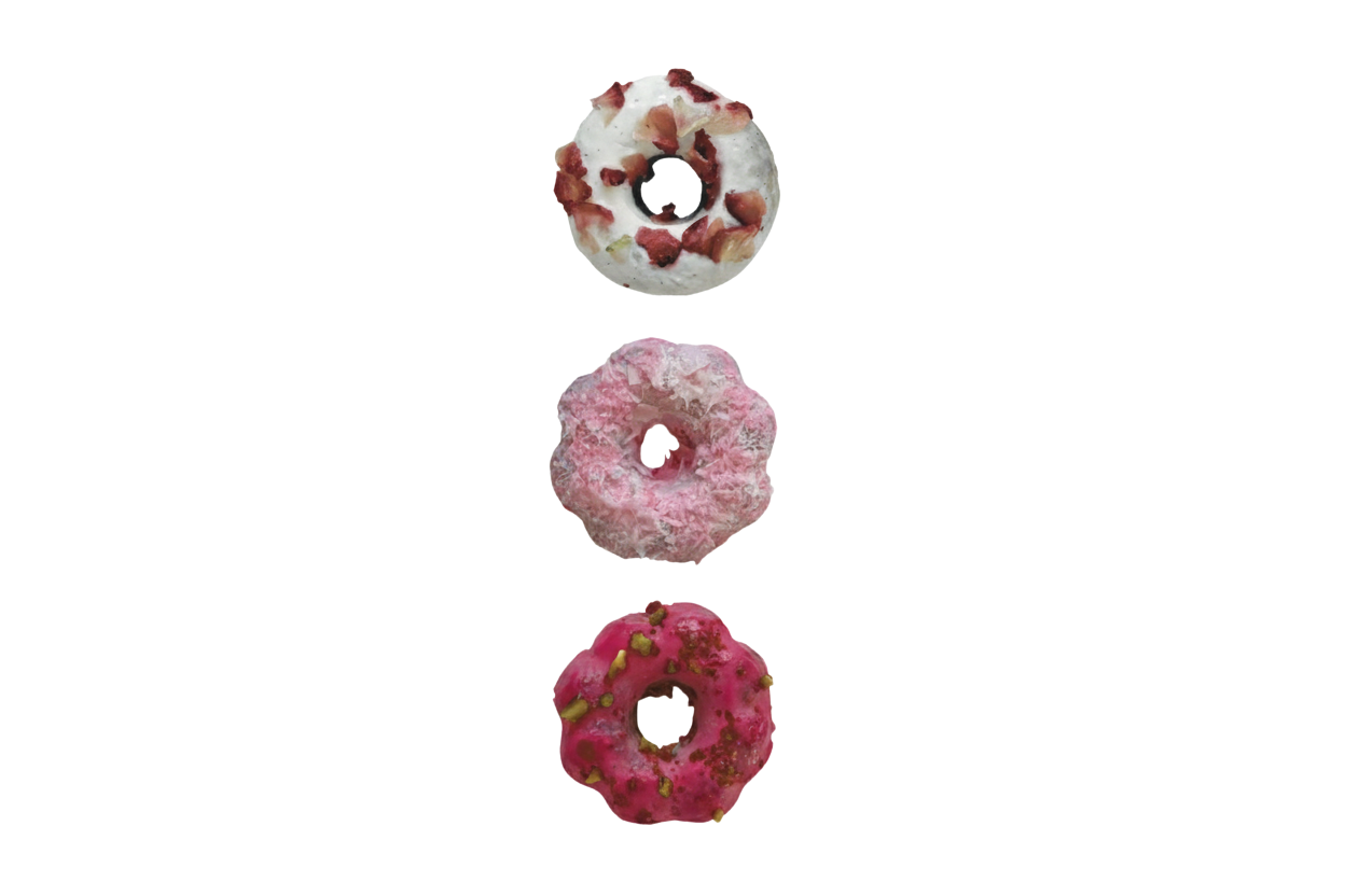 八ヶ岳の鹿肉・鶏肉・有精卵・地元野菜を使ったドーナツ生地に、 春らしい3つのフロスティング・カラーとトッピングを組み合わせた特別なコレクションです。