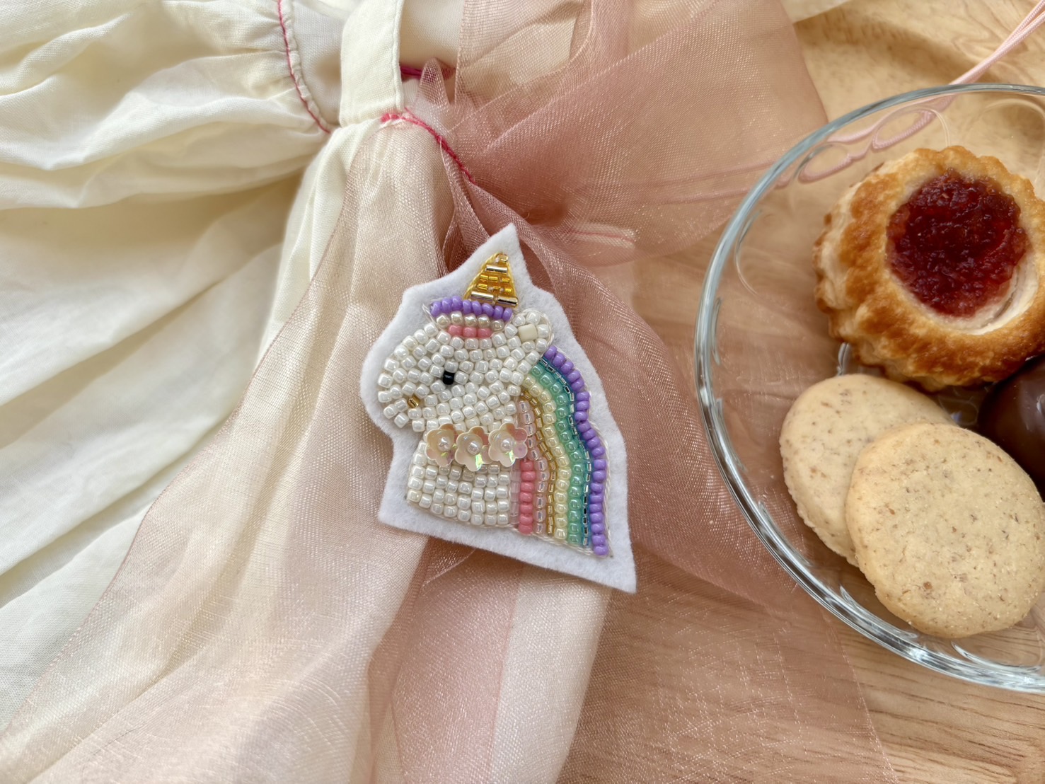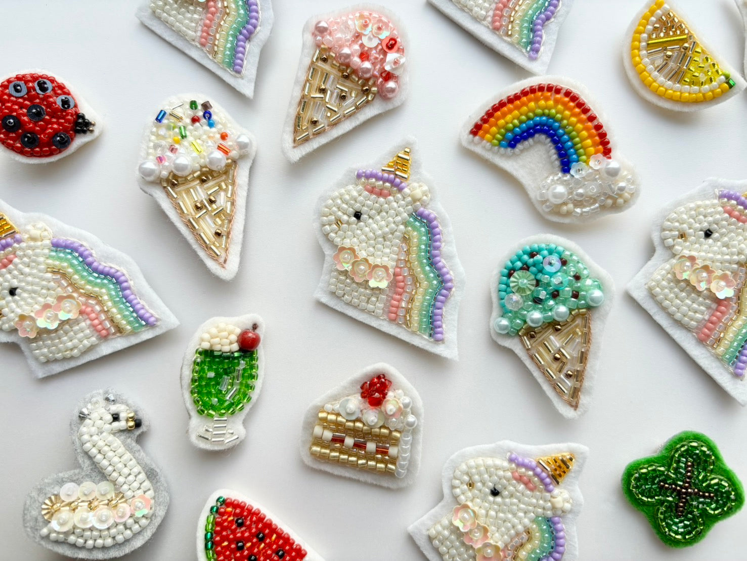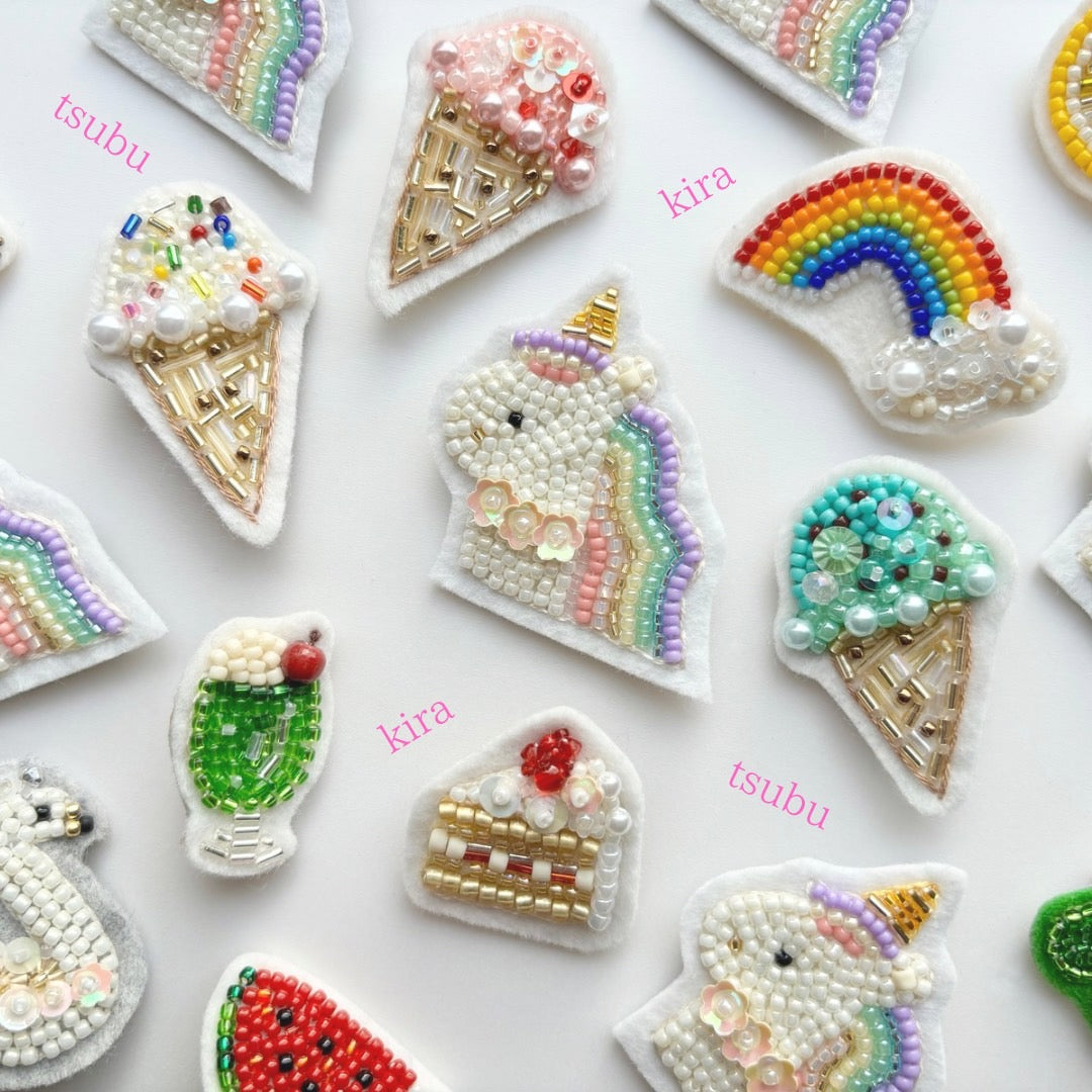 見るたび笑顔になる。ちょうどいいブローチ。~毎日使いやすくて、プレゼントにも喜ばれる。くすっと笑えて、心を軽くする。あなたにとってちょうどいいブローチになりますように~ひと粒、ひと針、丁寧に今日も制作しています~