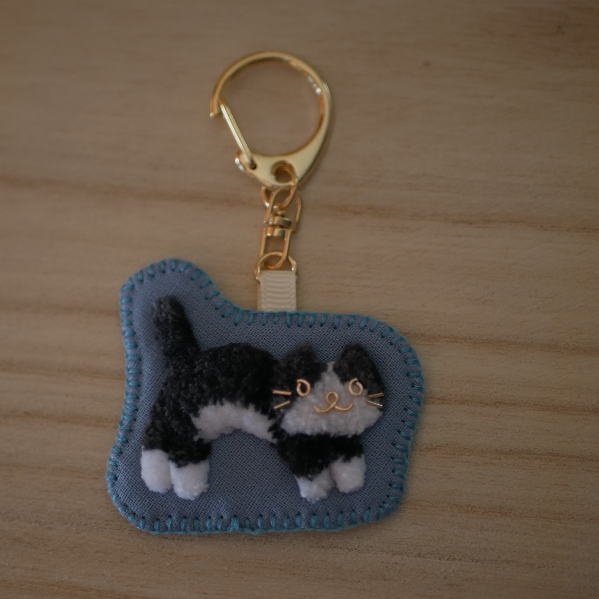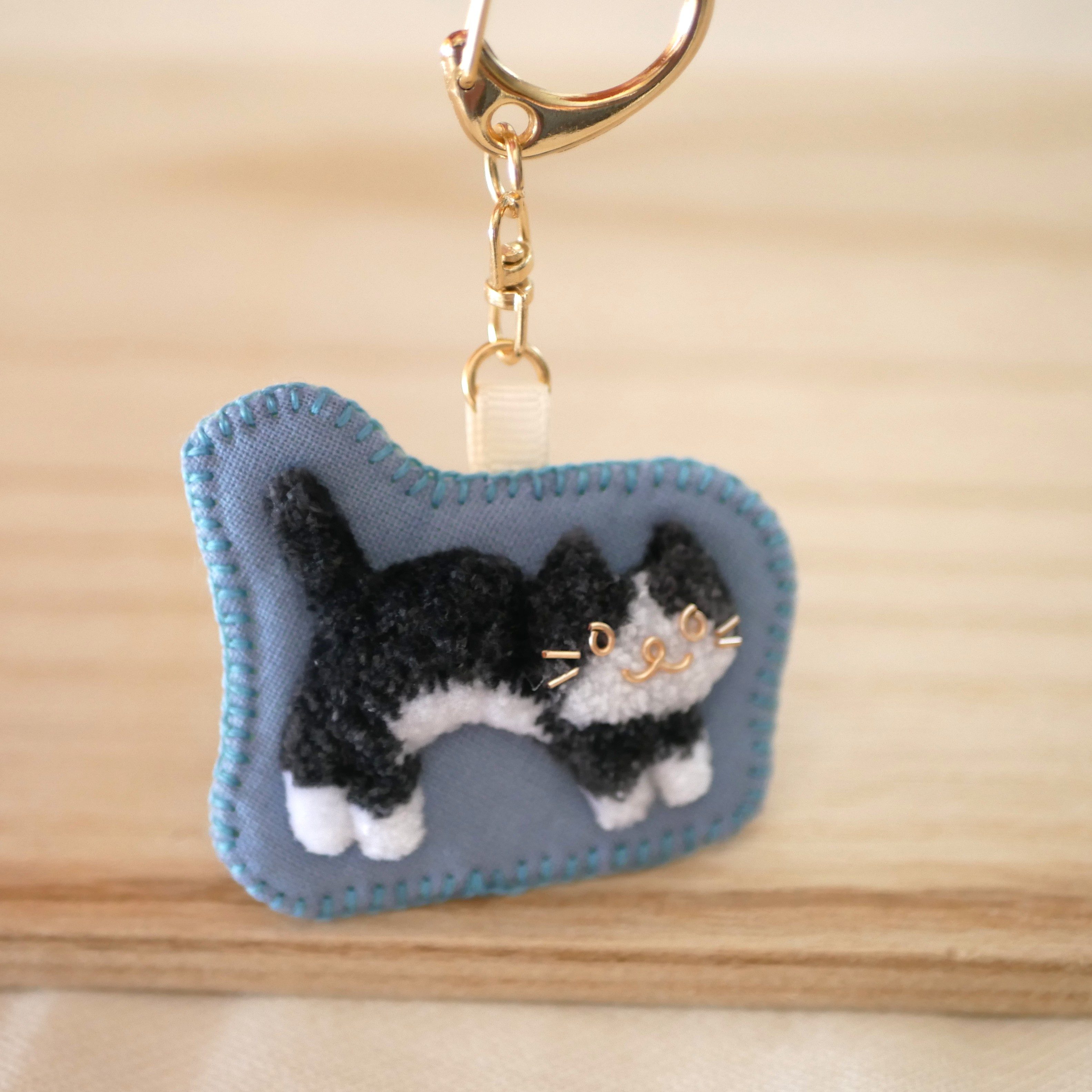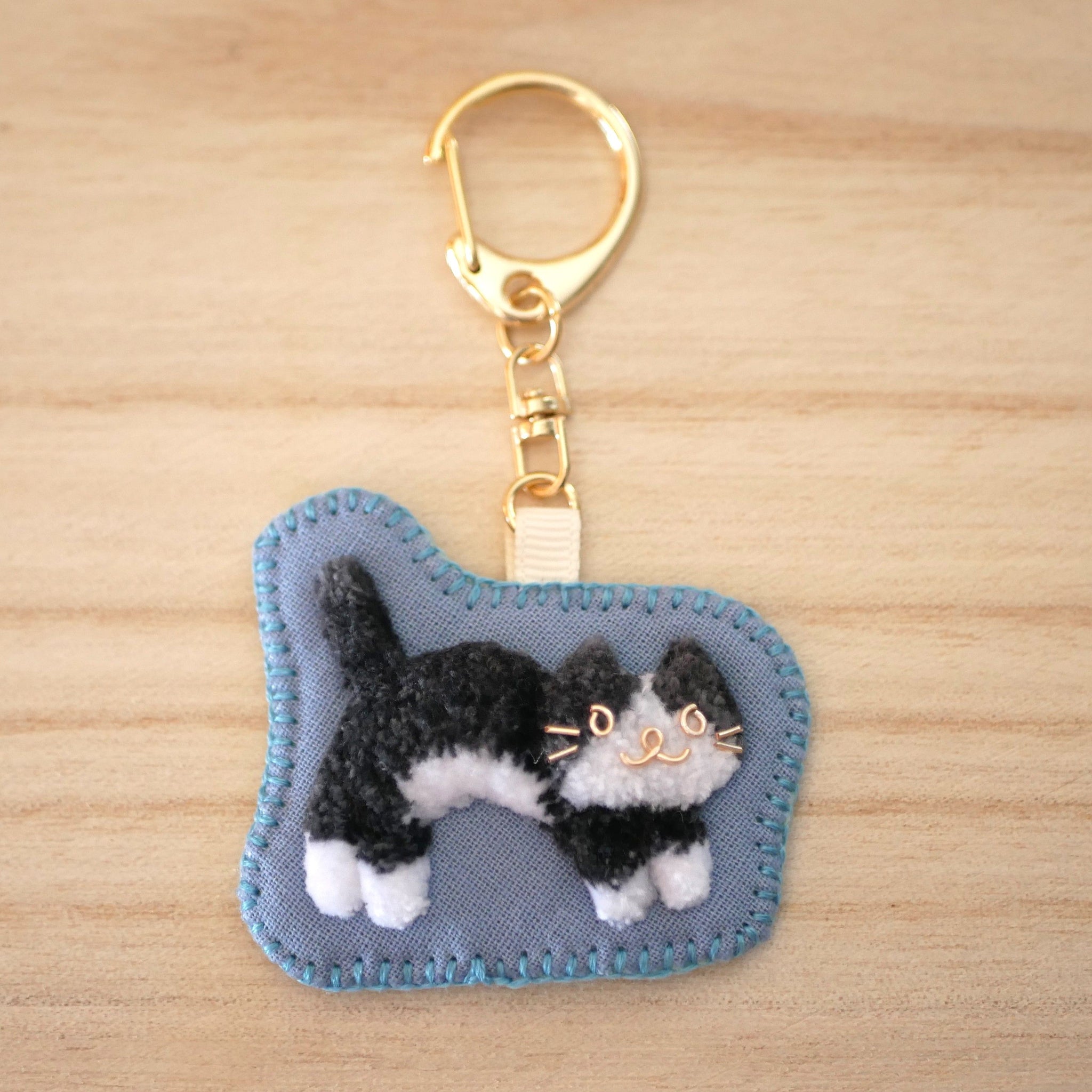 和み猫のキーホルダー はちわれ まるのび|Little Plum(リトルプラム)
