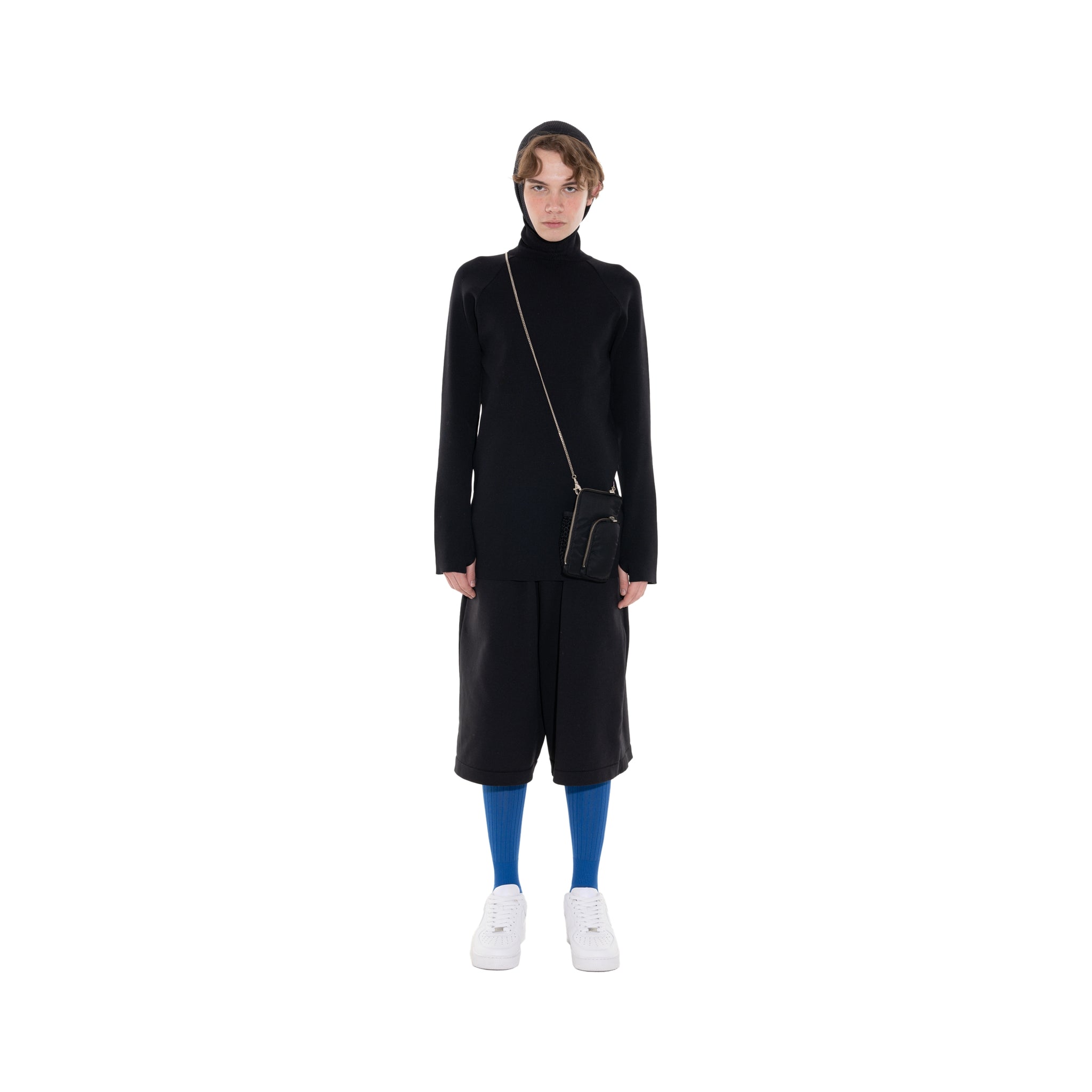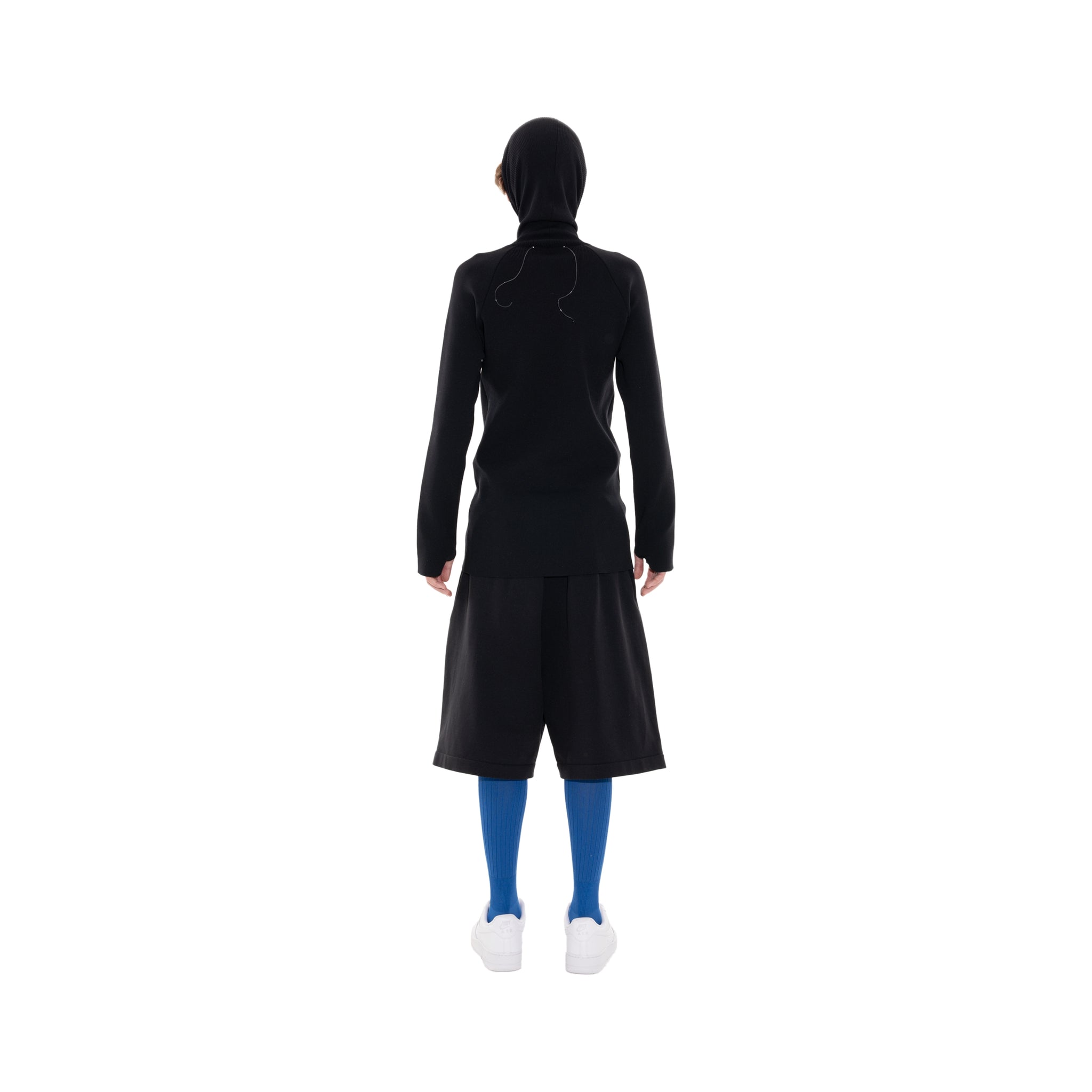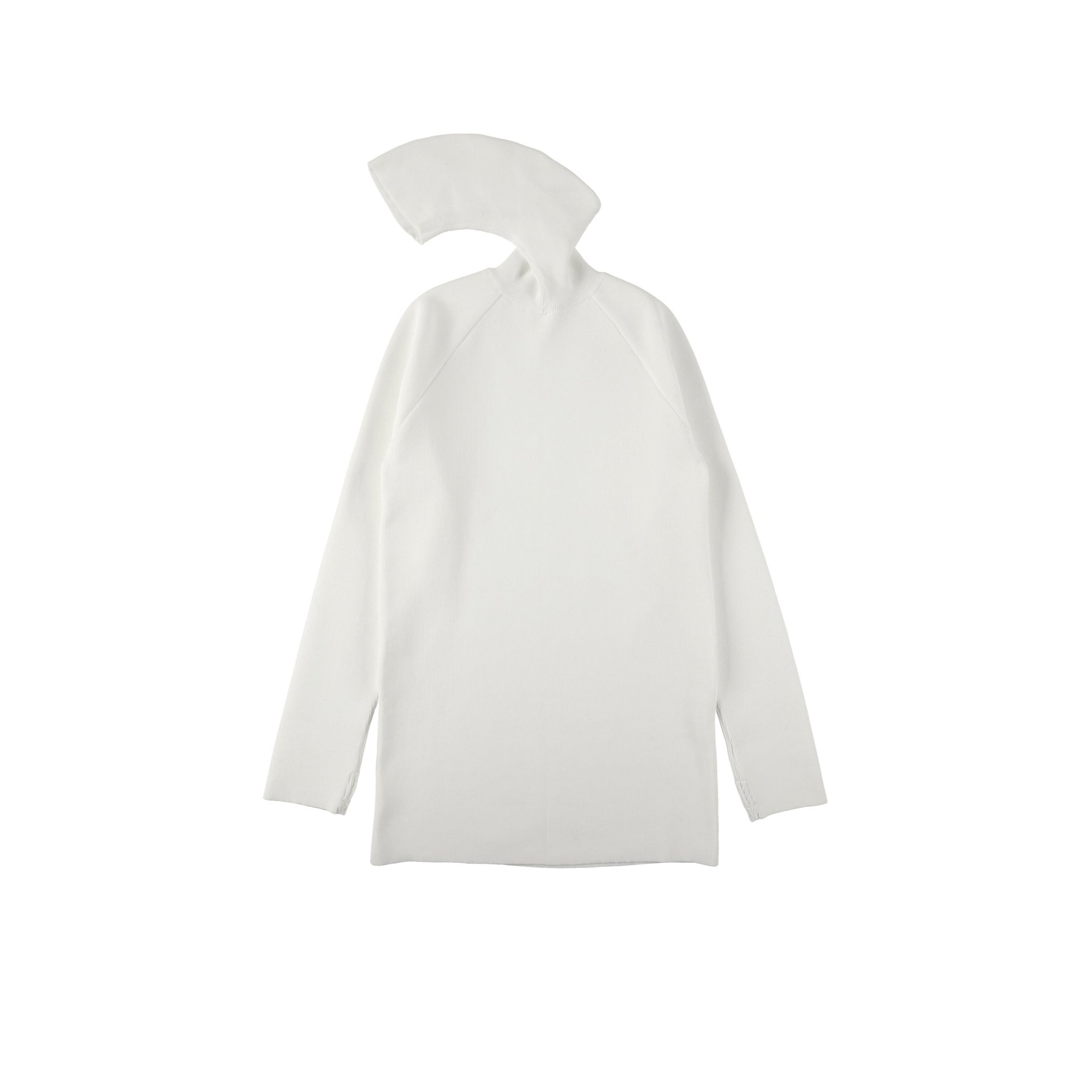 頭に被ることができる長めのタートル付きリブニット。
